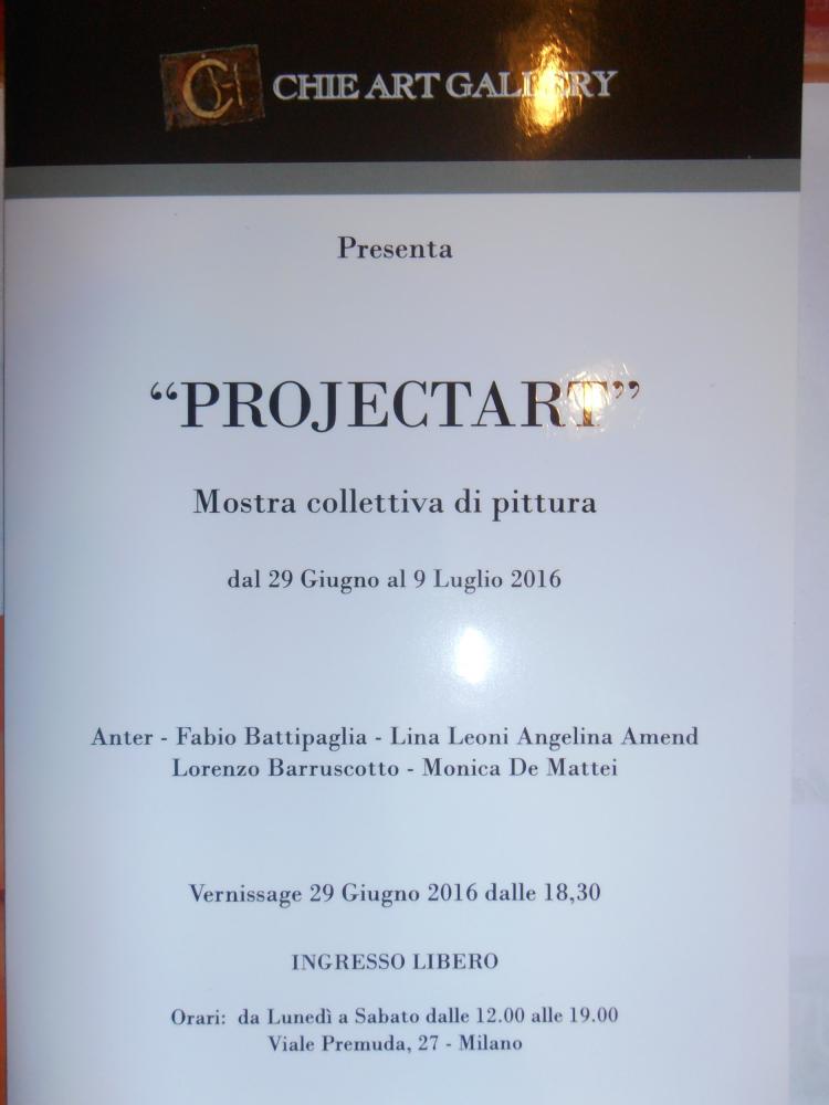 partecipo con alcune mie opere alla mostra collettiva ProjectArt presso la Chie Art Gallery sita in viale Premuda n.27 a Milano (Italia) vicinanze p.zza 5 giornate dal 29-06 al 9-07-2016 a cura della D.ssa Maria Irene Vairo.