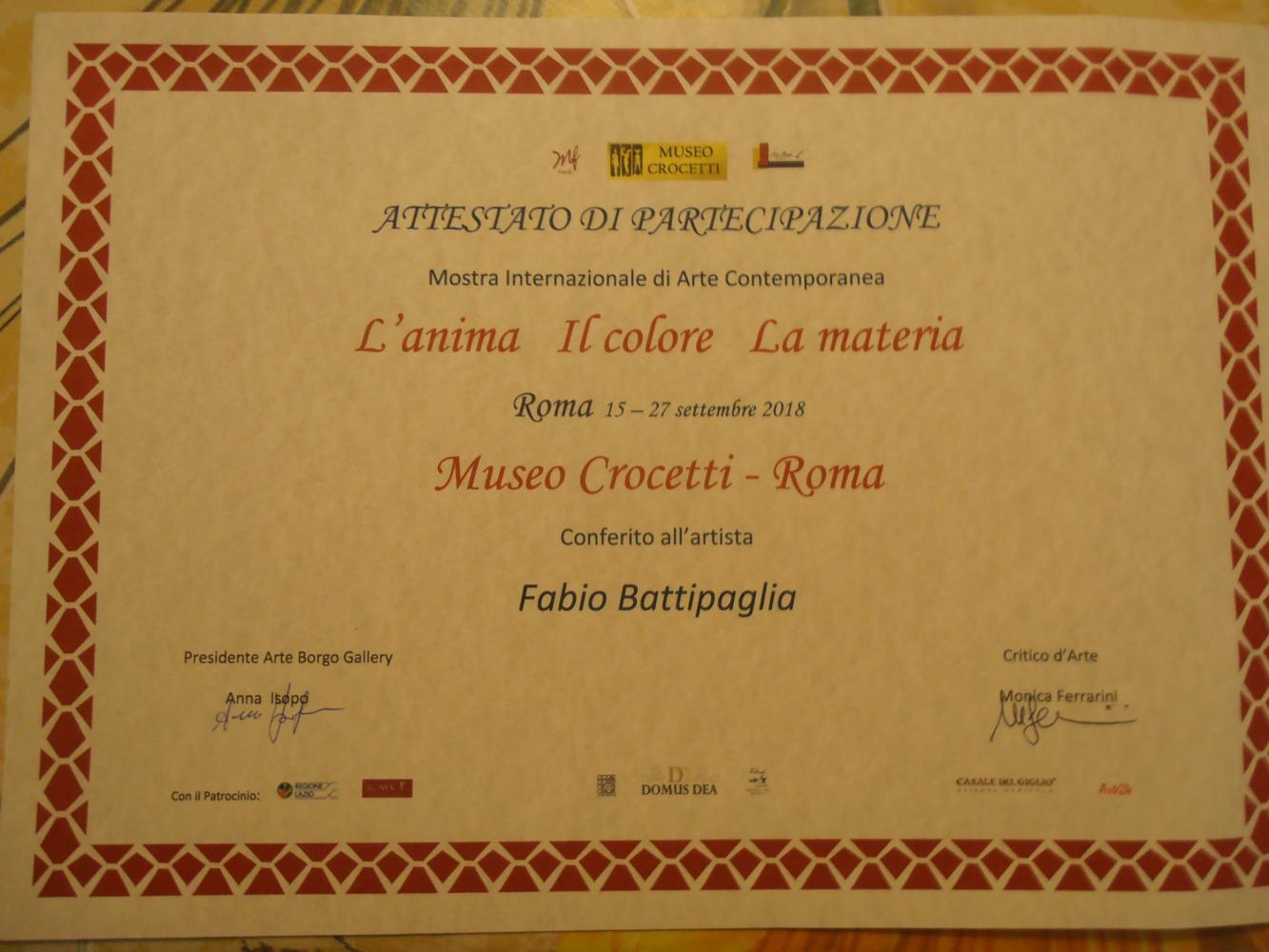 Artista Fabio Battipaglia partecipa a mostra collettiva internazionale presso Museo Crocetti a Roma