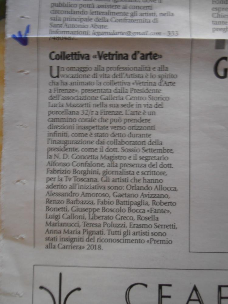 Partecipo con due mie opere alla mostra "Vetrina d'Arte a Firenze" dall'8 al 15 dicembre 2018 presso la Galleria d'Arte Centro Storico Via del Porcellana n.32r Firenze
