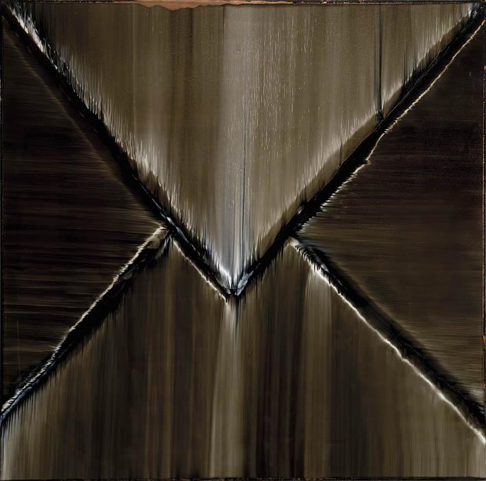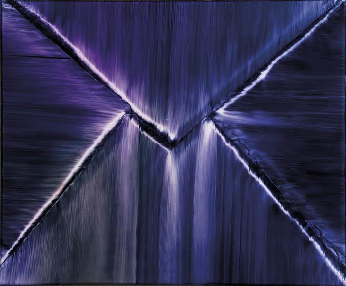 La mostra si presenta come un’antologica di grande respiro poiché raccoglie i frutti maturati nel corso di quarant’anni di attività. Comprende i percorsi tracciati da Giovanni Lombardini che si dipanano fluenti come le braccia di un grande delta, ripercorrendo le diramazioni di una ricerca sempre tenacemente aggiornata che sembra magicamente auto costruirsi e relazionarsi con la realtà contemporanea. Realtà che si dispiega come un vasto insieme di contaminazioni, riutilizzi, mescolamenti. Lombardini, dotato di profonda misura etica e di consapevole riflessione estetica, agisce quindi su un insieme di recuperi simbolici, che provengono da una storia artistica personale dalla cui trae alimento continuo. “Dipingere più con gli occhi che con le mani” ebbe a dire l’artista qualche tempo fa: questo ha significato per lui immergersi in scelte precise, verso una pittura fatta di colore-campitura e spazio-luce. Fa dunque percorrere al colore un tragitto guidato, in forme nettamente scandite, giocato su nervature e esplosioni e scie; il suo colore è pigmento fluido e alchemico, svela la vita della materia (naturale e artificiale), mentre la somma delle sue superfici pittoriche è data dai rimbalzi di luce e dalla trasparenza e permeabilità all’aria e all’atmosfera.