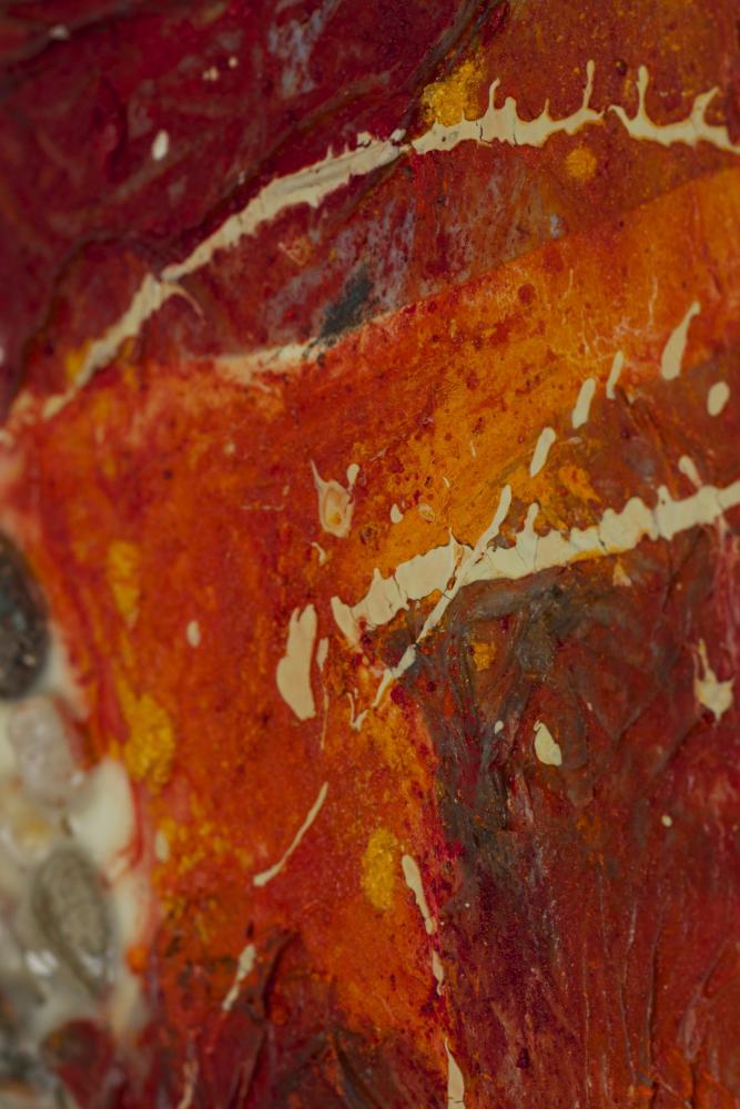 Le opere in mostra traducono in pittura i versi del libro e si accompagnano ad un cortometraggio che illustra il viaggio iniziatico della Regina di Saba che attraversa la Basilicata dagli aridi paesaggi dei calanchi fino al castello di Monteserico,per incontrare il saggio Salomone. Il percorso si connota come un cammino di crisi e di mutamento accompagnato dalle calde folate del vento di Scirocco.