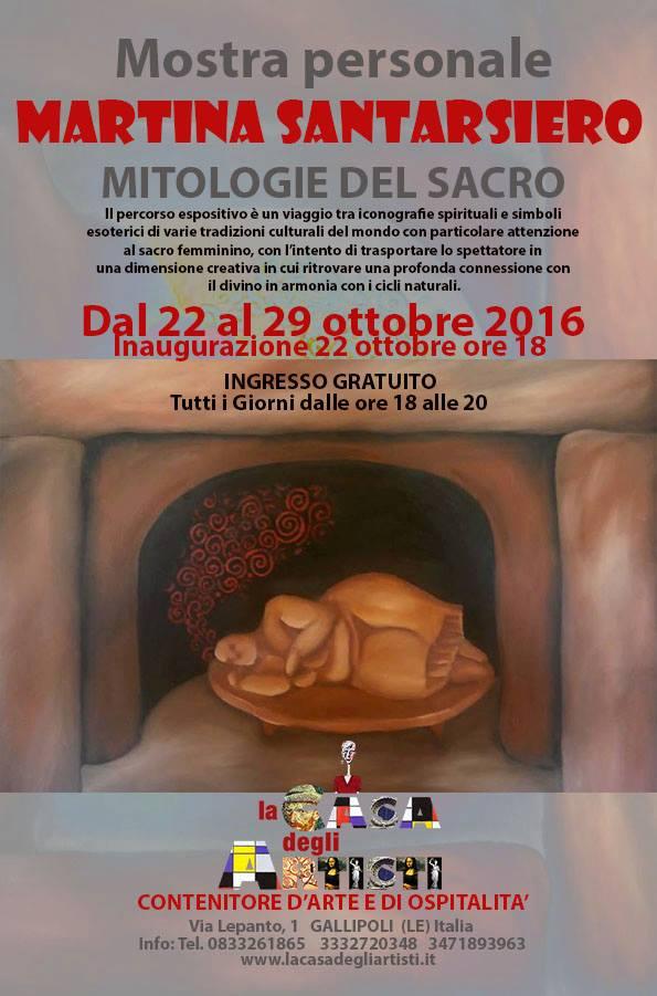 Dal 22 al 29 ottobre 2016 presso le sale espositive del Bed and breakfast La Casa degli Artisti Via Lepanto, 1 Gallipoli (Le) Italia