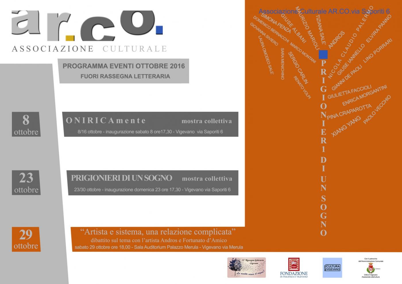 Mostre, Pavia, Vigevano, 08 October 2016 ONIRICAmente è la prima mostra del progetto PRIGIONIERI DI UN SOGNO, in cui si cercherà di fare arte riflettendo sul rapporto complicato tra artisti e sistema dell'arte. Inserito 9 anni fa 0 Mi piace Non piace più 0 Commenti 109 Visite Condividi Facebook Twitter Google + Commenti 0 Inserisci commento E' necessario effettuare il login o iscriversi per inserire il commento Login