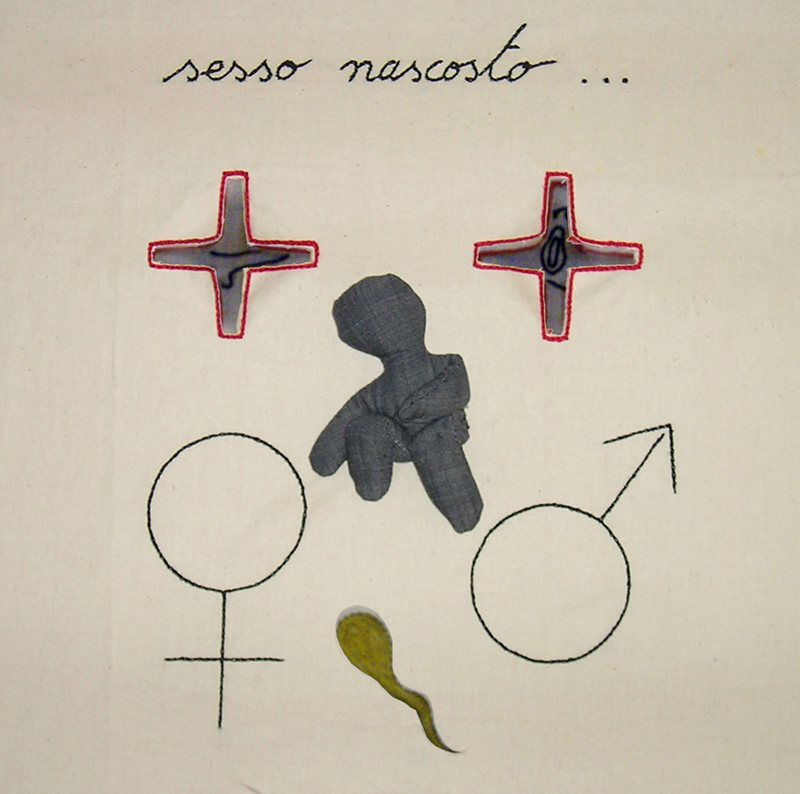 interpretazione per un sesso privo di sensualità come lo imponeva la chiesa alle copie sposate facendoli indossare lunghe camice da notte con, ricamato ad altezza del sesso un foro a forma di croce.
