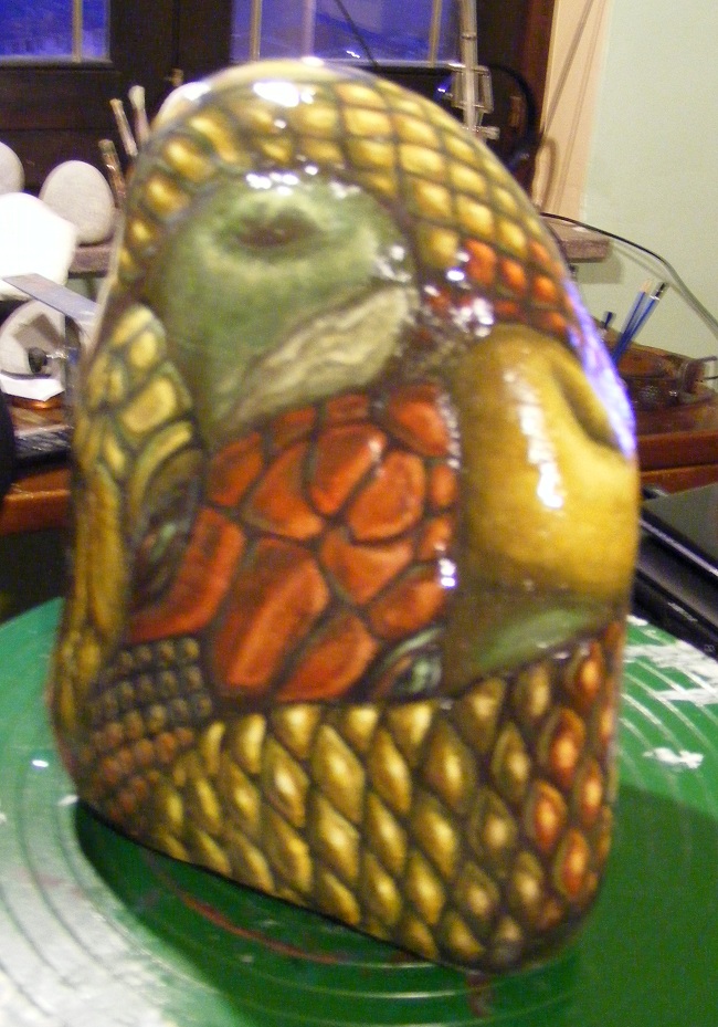 Il peccato rappresentato dalle mele di diverso colore, il Serpente tentatore per eccellenza, in questo caso quattro... La mela verde, il peccato "ordinario", la mela rossa, il peccato "straordinario"...