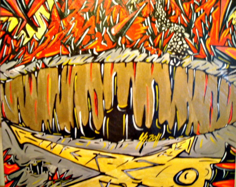 Dante.Un genio.Il titolo della tela l'ho ripreso da una suite di 15 minuti di un gruppo metal americano,gli Iced Earth,e ovviamente alla prima cantica della Commedia.