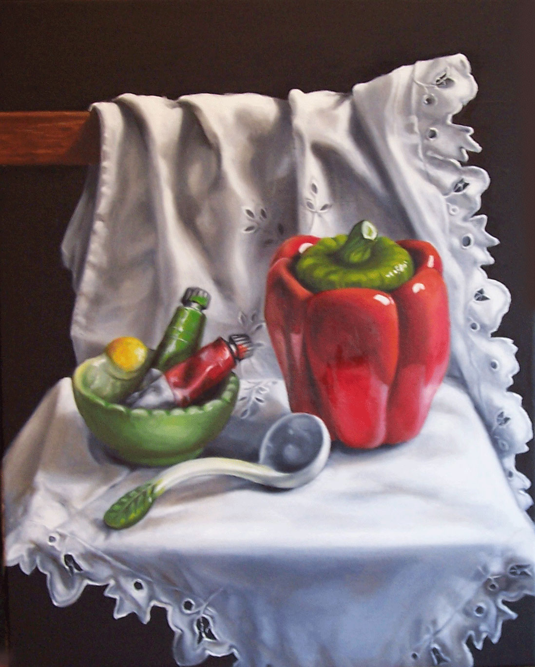 PINZIMONIO Pittura, Natura morta, Interni, Olio, 40x50cm Tela Olio Rosso ceramica colore tazza pennello NATURA MORTA Inserita 14 anni fa 3 Mi piace Non piace più 2 Commenti 273 Visite Condividi Facebook Twitter Google + Piace a 3 Souad Nasr Makhoul Artista - Haifa, Israele monica zambon Artista - Imperia ASOR-ROSA Artista - Pordenone Commenti 2 14 anni fa monica zambon Artista Complimenti! Hai una bella mano! 14 anni fa Francesco De Iure Artista Complimenti per la splendidaesecuzione. Inserisci commento E' necessario effettuare il login o iscriversi per inserire il commento Login