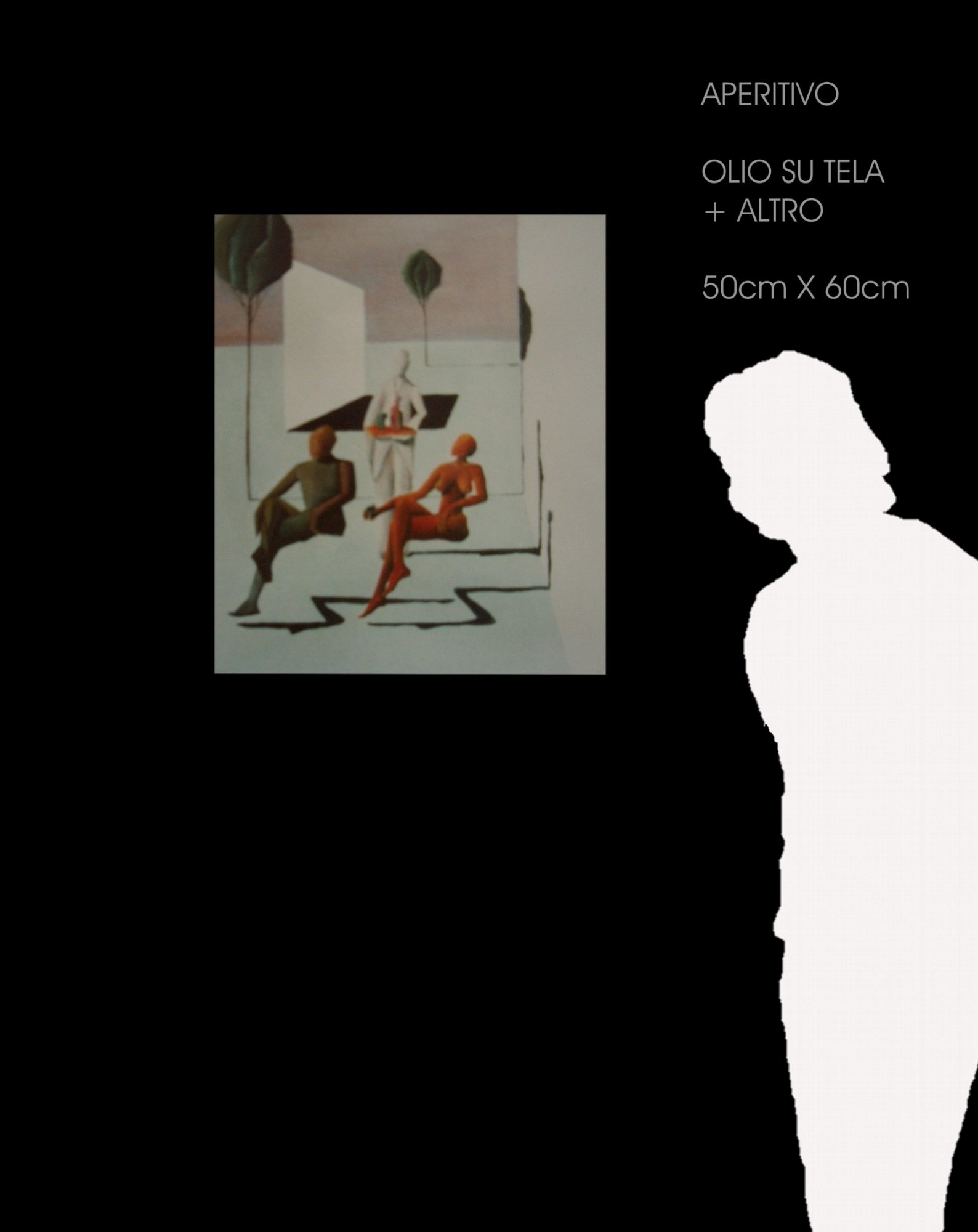 aperitivo Pittura, Figura umana, Olio, 50x60x5cm Tela Olio Inserita 17 anni fa 0 Mi piace Non piace più 0 Commenti 100 Visite Condividi Facebook Twitter Google + Non ci sono mi piace Commenti 0 Inserisci commento E' necessario effettuare il login o iscriversi per inserire il commento Login