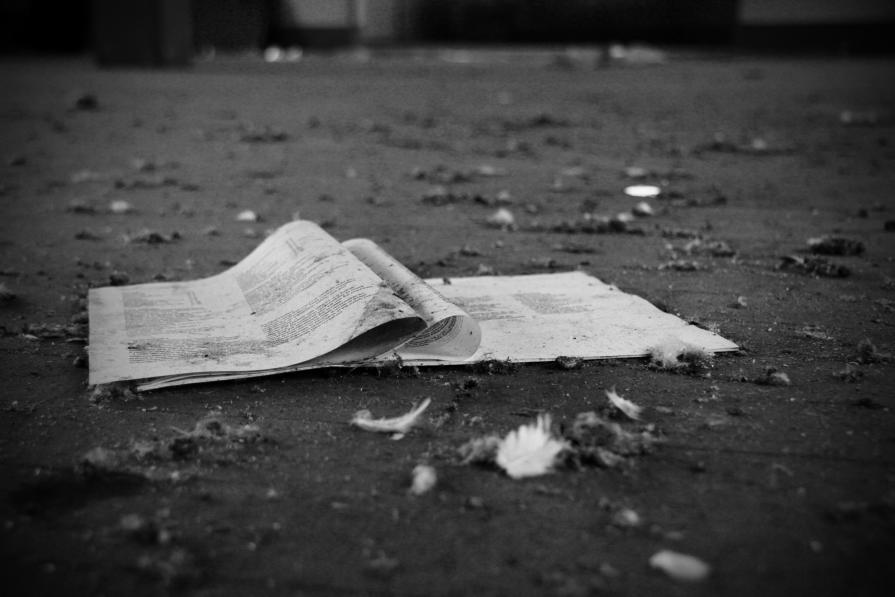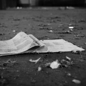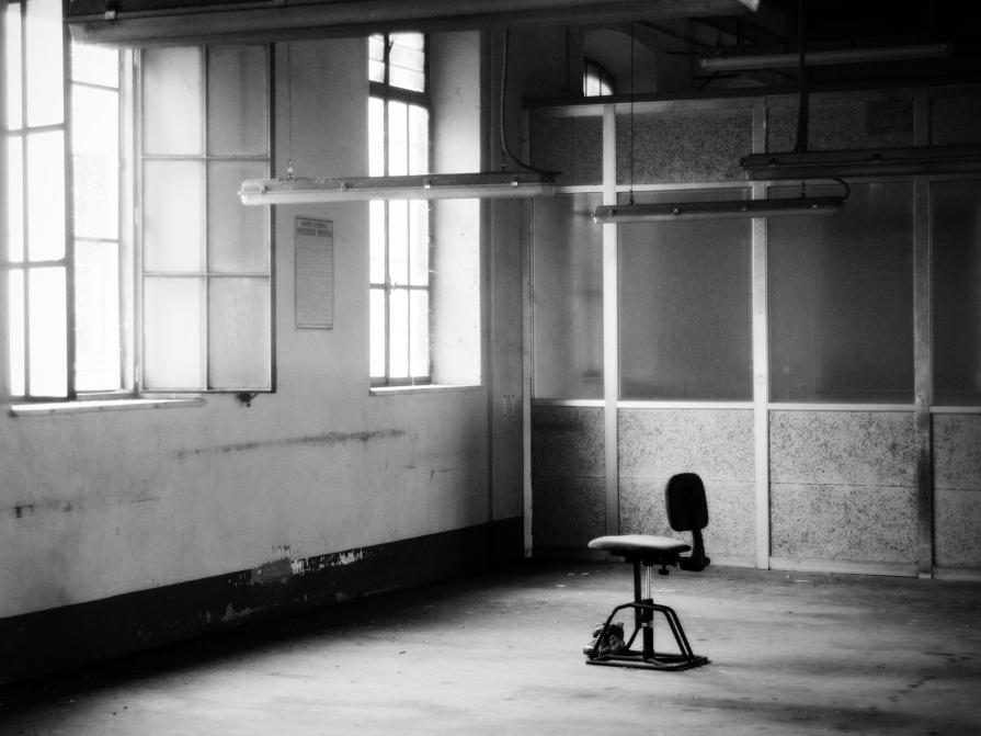 La seconda e la terza foto (la sedia ed il giornale) sono tratte da una fabbrica manifatturiera, dove con l'avvento della tecnologia, l'uomo viene sostituito dalla macchina ed il personale ridotto, la sedia vuota davanti la finestra vuole rappresentare la caduta della speranza e l'arresa, il giornale sono tracce di una vita passata oramai perduta.
