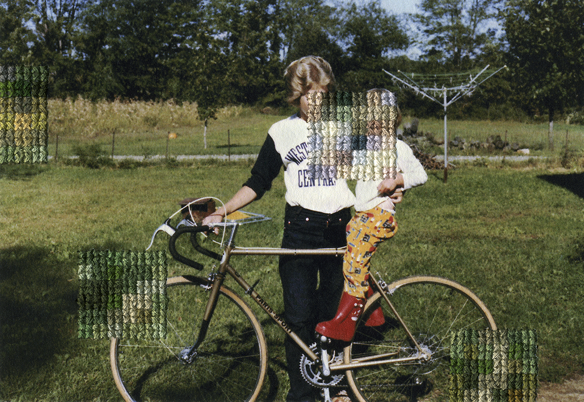 meticulous cross-stitch embroidery pattern sewn directly into the photograph.