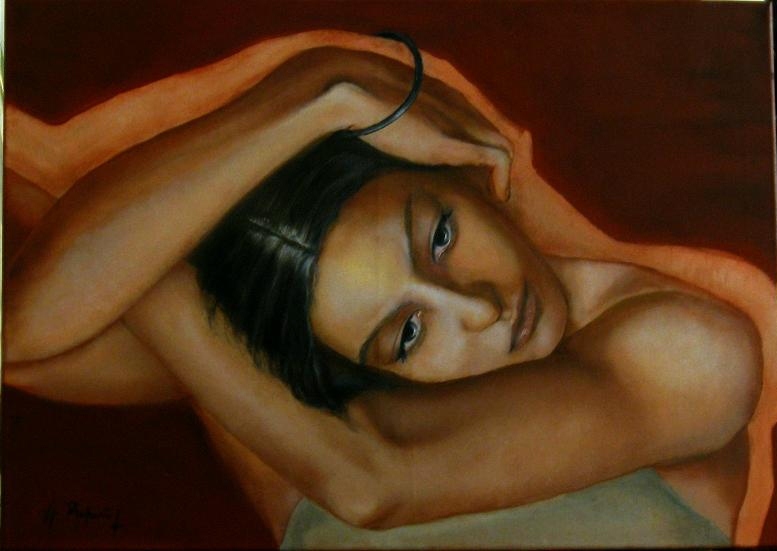 Sei pittrice di straordinaria raffinatezza e ricerca. Assaporo il gusto, caldo, delle cromie in tono dorato che hai saputo stendere come un vello impalpabile a suggello della purezza di ogni donna.