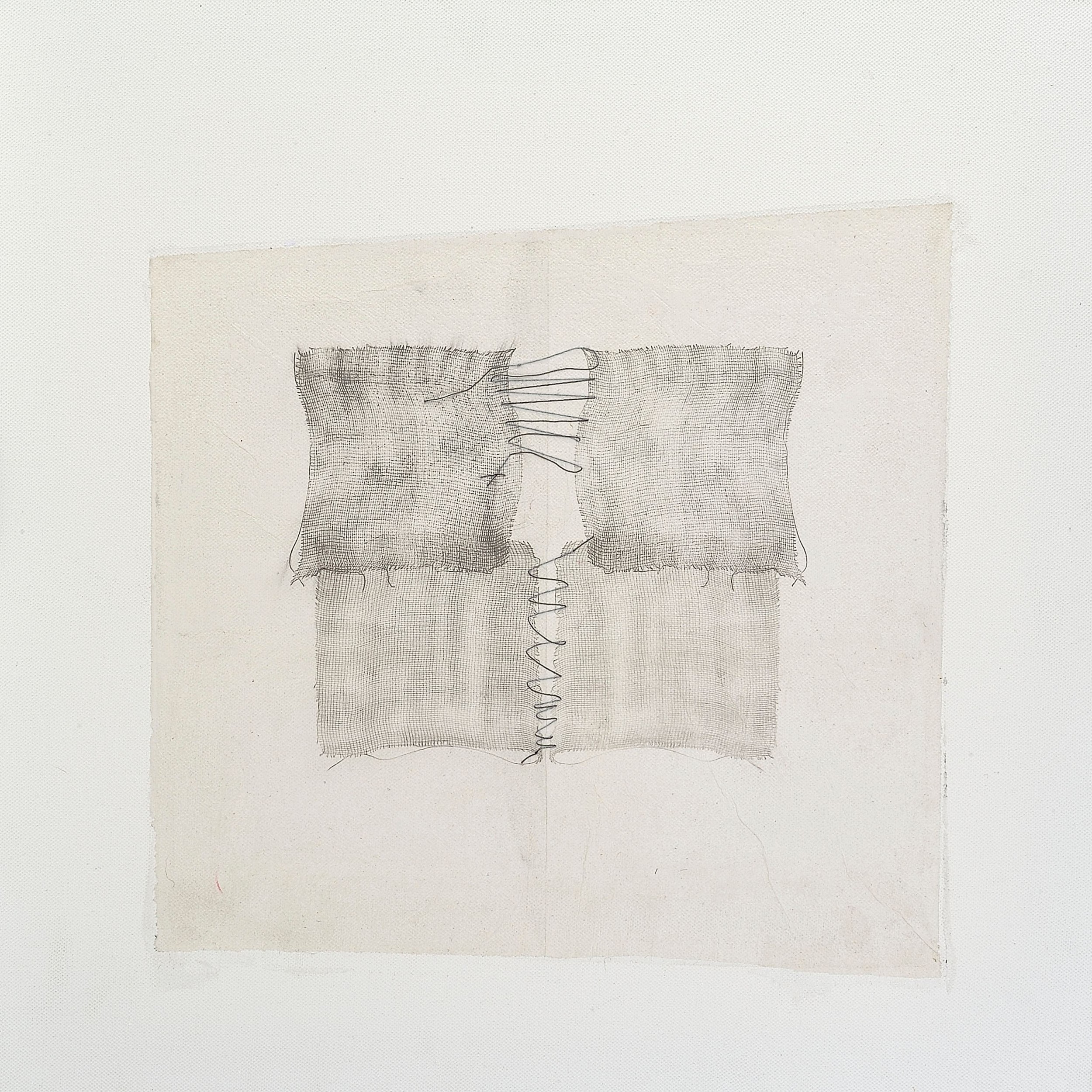 la ricerca si evolve in un nuovo percorso stilistico, orientato verso un linguaggio di smaterializzazione del peso materico ad un’estetica di trasparenza e leggerezza. Lo studio attuale si incentra sulla sensazione percettiva di traccia del segno grafico, impressa e cucita sulla carta velina e poi applicata su supporti in tela o in cartoncino stampato.