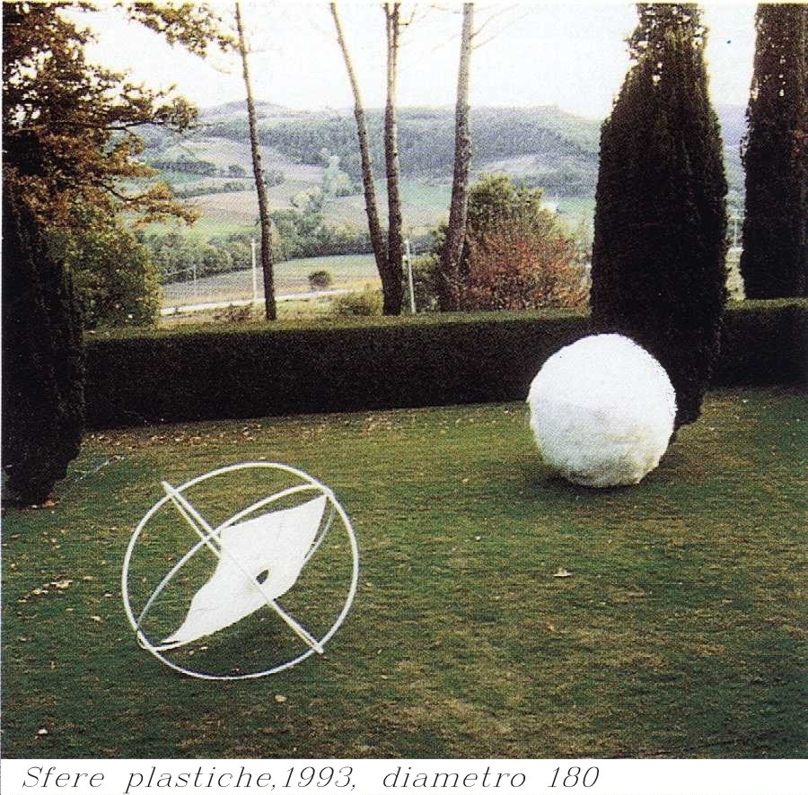 Il Giardino del Tempo, un'istallazione composta da due sfere bianche, l'una la sfera della memoria, in cui attimo ed eternità si fondono, l'altra, del Tempo reale, il vissuto, quadrata e labile come la nostra esistenza. Esposte nell'ottobre del 1993 presso Villa Fassia in Gubbio.