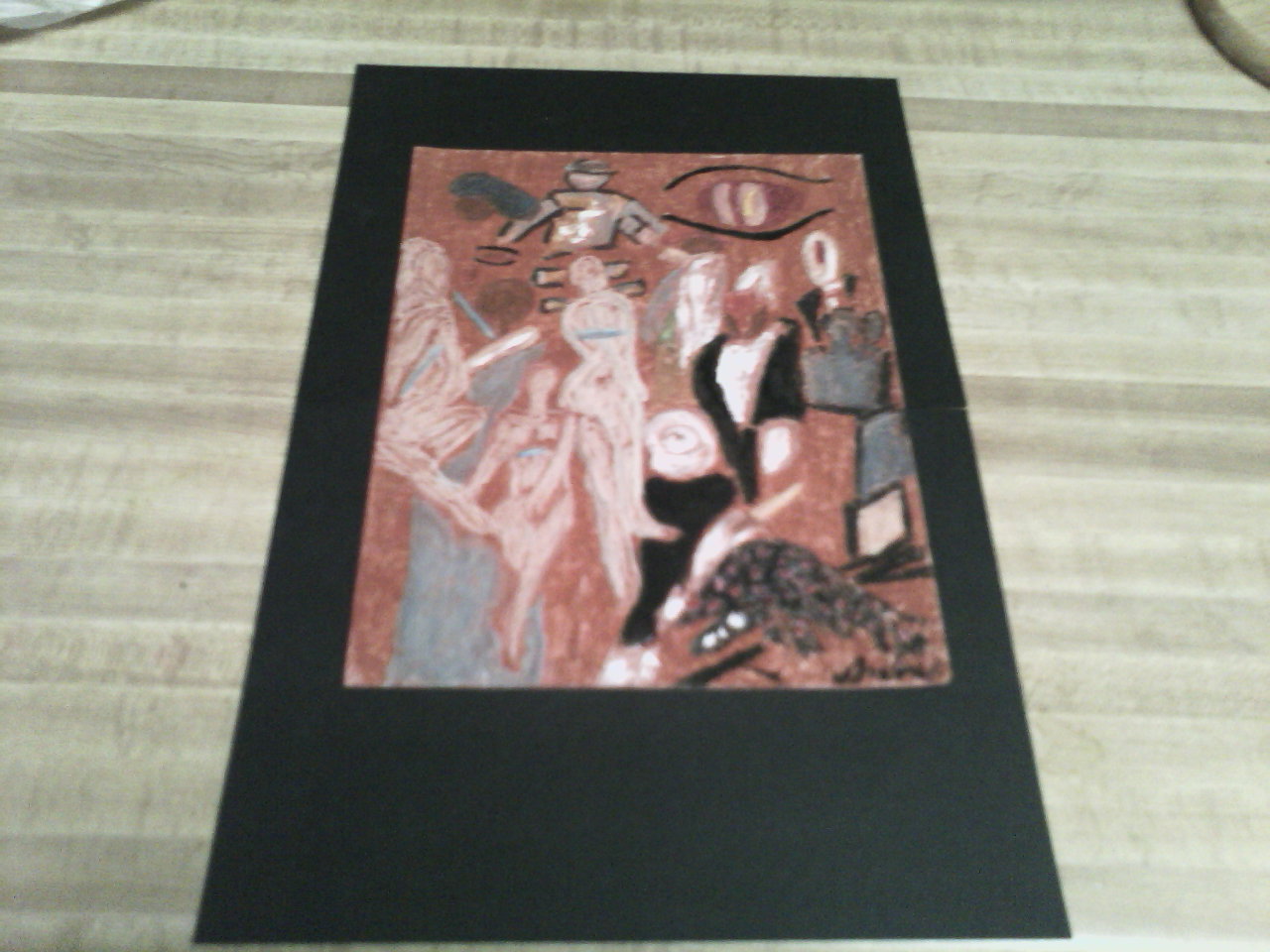 This painting is expressing the orginally opposite of a formidable subject an artist and held at a review of his work ,in a velvet red coat lined in black , whites a posture is instensely alert, the piece speaks of his flooded hands, as a symbolic course of many centuries , among aritist jury and panel. the secissors recall as a unsurpasse painter of light and ordinary people , my work immediacy shows striking actuality as a busy painter pictures humbles people indoors. The image his doing so with dignity and authority as the pilar as harmonious in composition ..