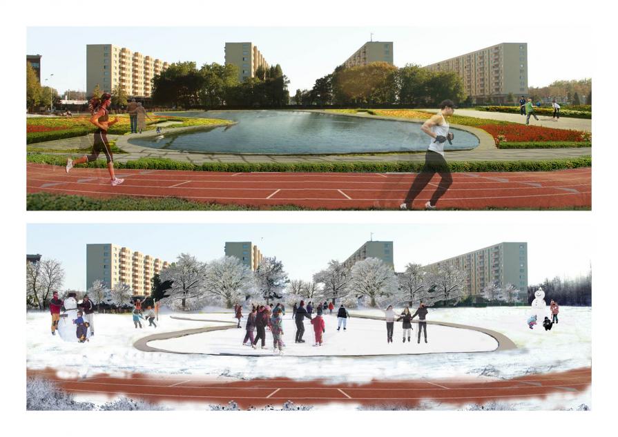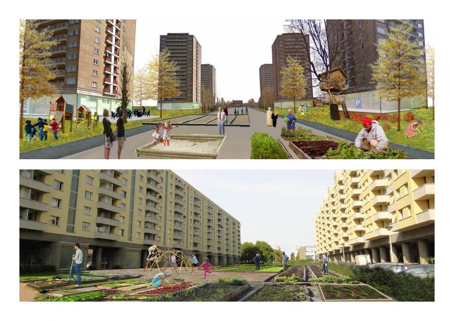 Since recent years, planners in Antwerp are succeeding to regenerate the public realm through integrated city programs and strategic city developments. Successful projects in the old city and the 19th century belt, a design for the quays of the river that borders the city, plans for the inner ring road and a large park on former railway infrastructure are demonstrating this. Though, there is one area that seems to leave designers and policy makers puzzled; Luchtbal, one of the rare pieces of high rise social housing estates in Belgium. Several plans have been made for this suburban village in the north Antwerp, but none of them seems to be able to fully address the issues the area is dealing with. The project 'Recycling Luchtbal' is part of the design studio 'Antwerp-North, Re-visiting the Modernist City' of the MaHS/MaUSP program at KULeuven. It is the result of a collaboration between the students Cecilia Furlan, Jonas de Maeyer, Nele Aernouts, Thi Thanh Van Pham.
