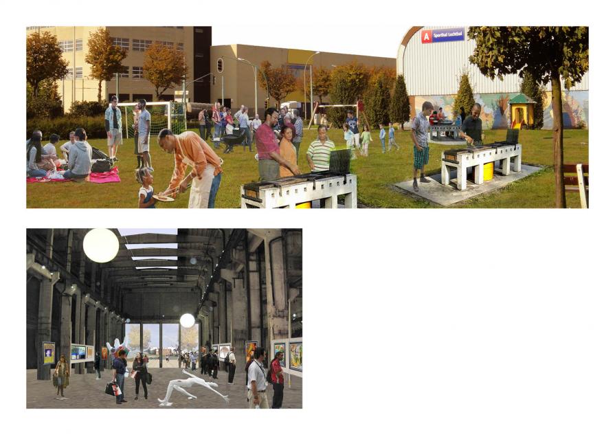 As too many modernist planning layers have been overlaid over time, 'Recycling Luchtbal' is not about imposing a new masterplan. Out of the palimpsests of a common past and the residual spaces, a new network is composed. This network is the framework for the mixed centrality in which the project intervenes. The framework is not considered as a plan, but as a vision that should be able to deal with a lot of uncertainties not only caused by the factor of time. For that reason it recognizes the power of low cost and temporary interventions in the public and private space as a catalyzer for significant improvements in socio-economic dynamics. The interventions are not composed of ready-made solutions, but should be able to play a structural and strategic role in the execution of the long-term vision. The activities can vary from workshops, temporary community gardens in the residential area, temporary parks at the docks of the port and cultural events in residual buildings. Naturally, they can only work in accordance with the community, employees and social workers. Starting from these temporary activities, the project marks some highly underused sites that could play a key role in the revitalization of both areas. On these sites, the value of 'mixing' should be proved, by the implementation of a poly-technical harbor school, typologies combining light-industries and new residences, renovations of industrial buildings and landscape strategies. In the future, the network could be visualized through the materialization of the framework, an efficient public transport system, green links and buffers. Over time, the process of mixing can continue in newly released plots.