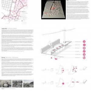 In this specific case it is more the existing structures which create the problems and therefore automatically have to become part of the urban masterplan. This requires concepts that on one hand improve the current conditions and sketches ideas for the future on the other.