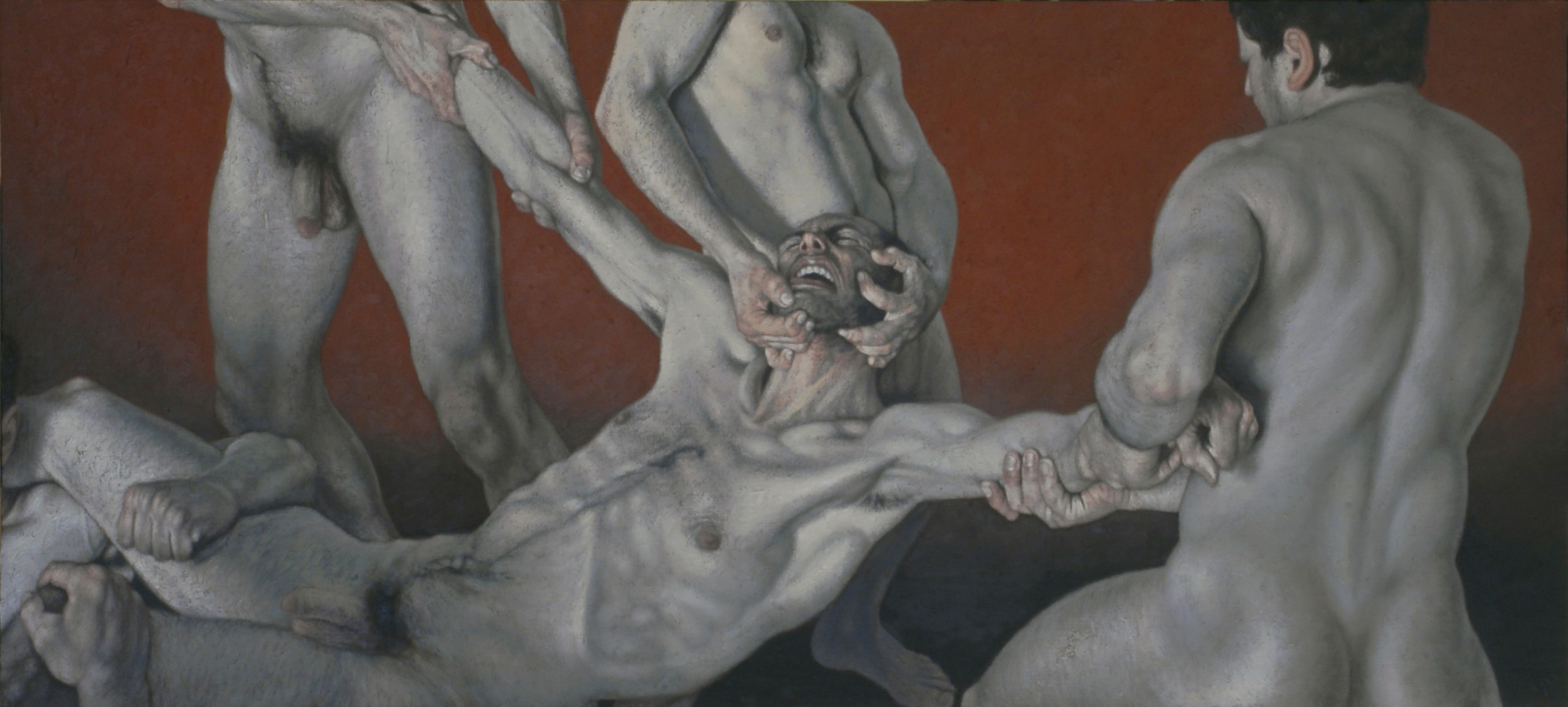 Sparagmós - frammentazione dell'essere. Fisicamente dilaniato da forze prive di volto, il corpo dell'uomo è anche psiche. Psiche smembrata, lacerata, privata di quell'unità morale e intellettuale che rende Uomini, che rende liberi. Troppe le tensioni, tutte verso direzioni diverse. L'uomo urla, ma l'urlo è come silenzio. Fintanto che nessuno è Uomo, nessuno può sentire.