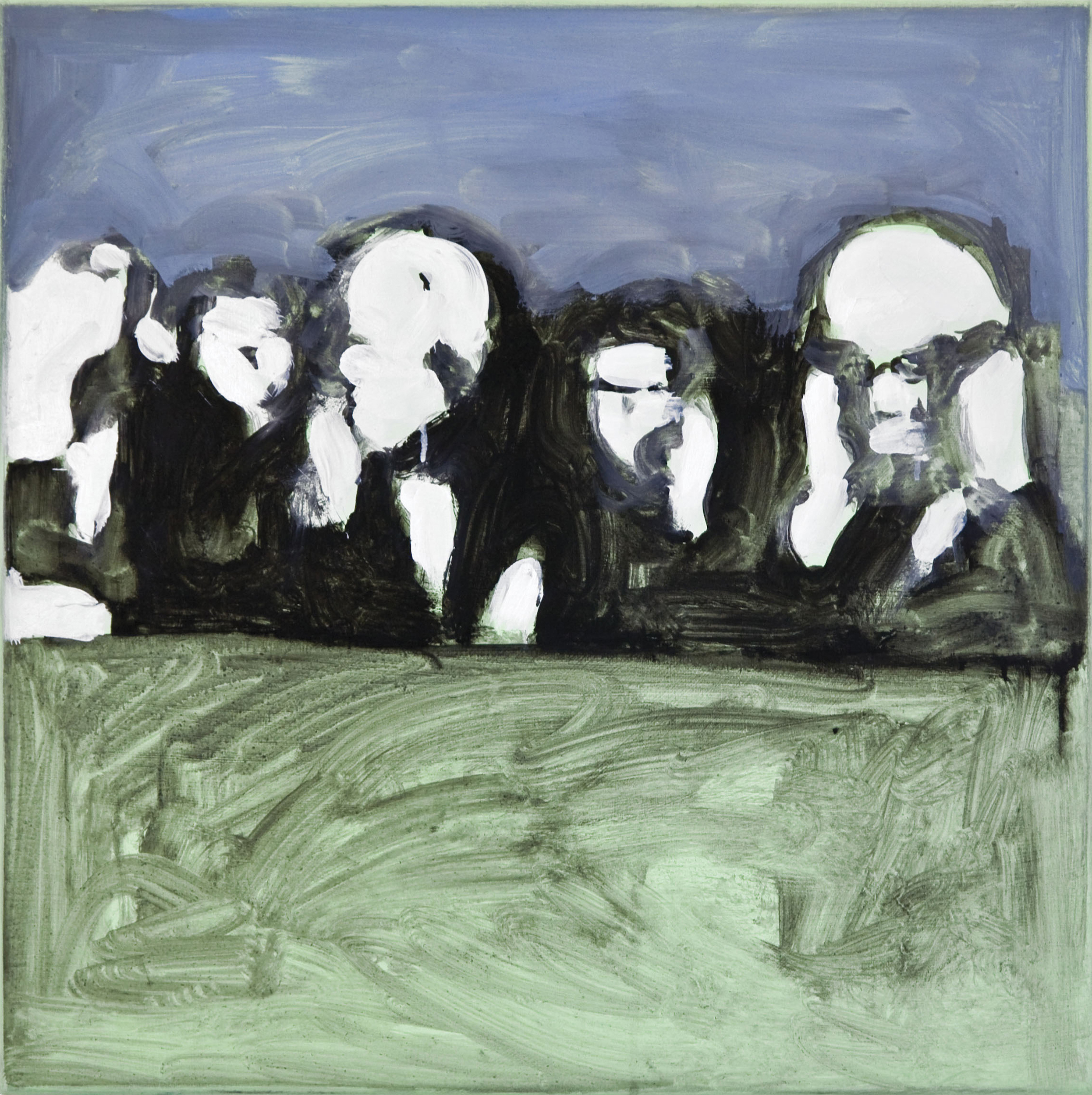 Le pennellate, veloci, indicano i soggetti principali tralasciando completamente quello che accade oltre; non vi è attenzione per il particolare, tantomeno per il colore inteso come rivelatore di una realtà oggettiva. Quest’ultimo, quasi sempre monocromo, non è utilizzato per alleggerire la durezza dei tratti; piuttosto risulta essere un ottimo alleato per incrementare la carica straniante dell’opera riconducendo essa alla sfera del sogno. Il lavoro è la registrazione sulla tela di fotografie originarie che hanno ispirato la composizione, mostrando un fermo immagine di un momento indefinito.