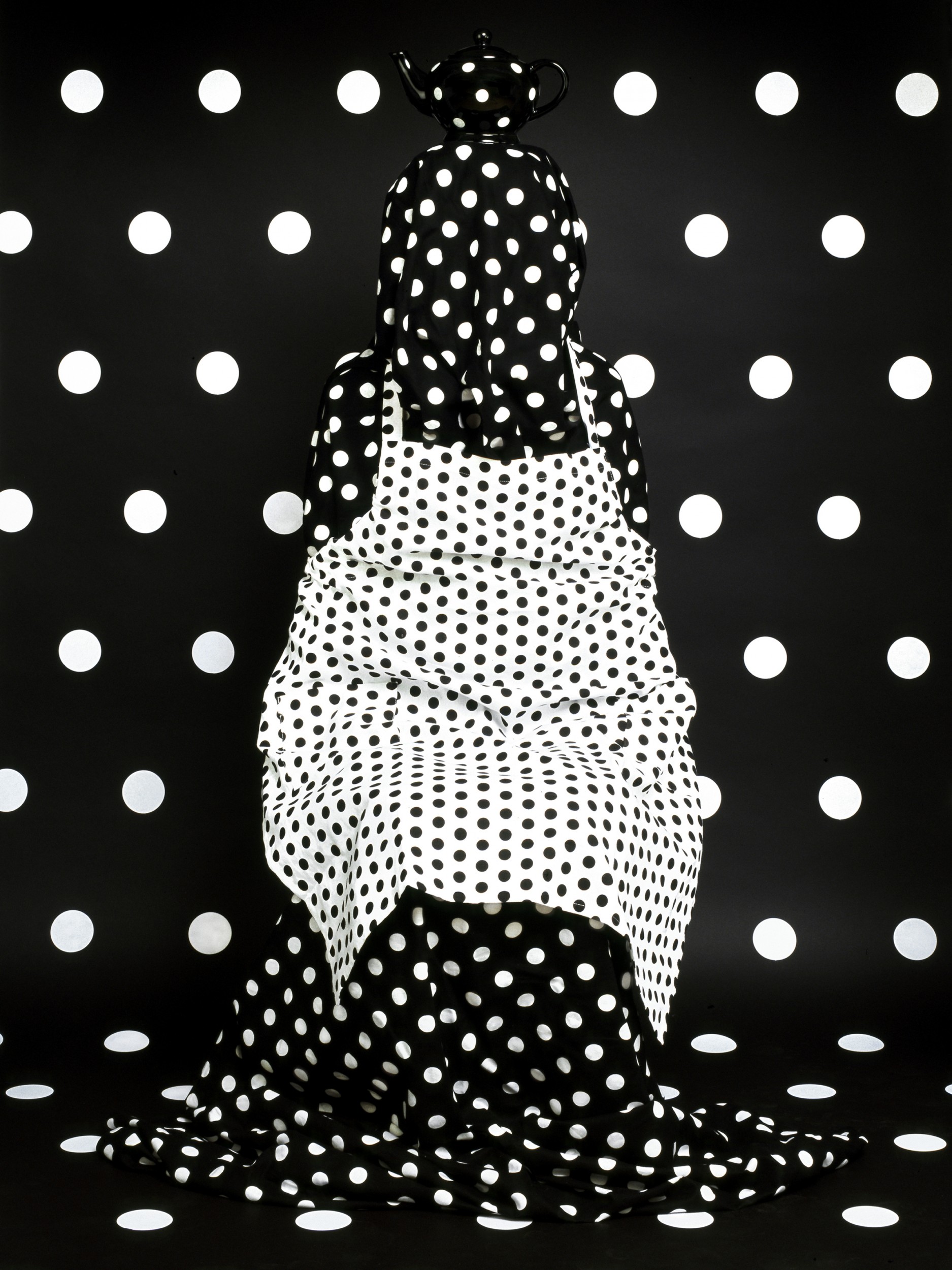 I am addressing conflicting issues of domesticity; the home as a place of comfort, or conversely, a place where decoration camouflages one’s individuality to the point of claustrophobia. While the inspiration for this series come from furnishing many homes, and memories of nuns who were my teachers throughout school, this series also references draped statues from the Renaissance, women wearing the burka, the Virgin Mary, ancient Greek and Roman toga clothing, priests’ and judges’ robes, as well as the pure love of soft fabric providing comfort at home.