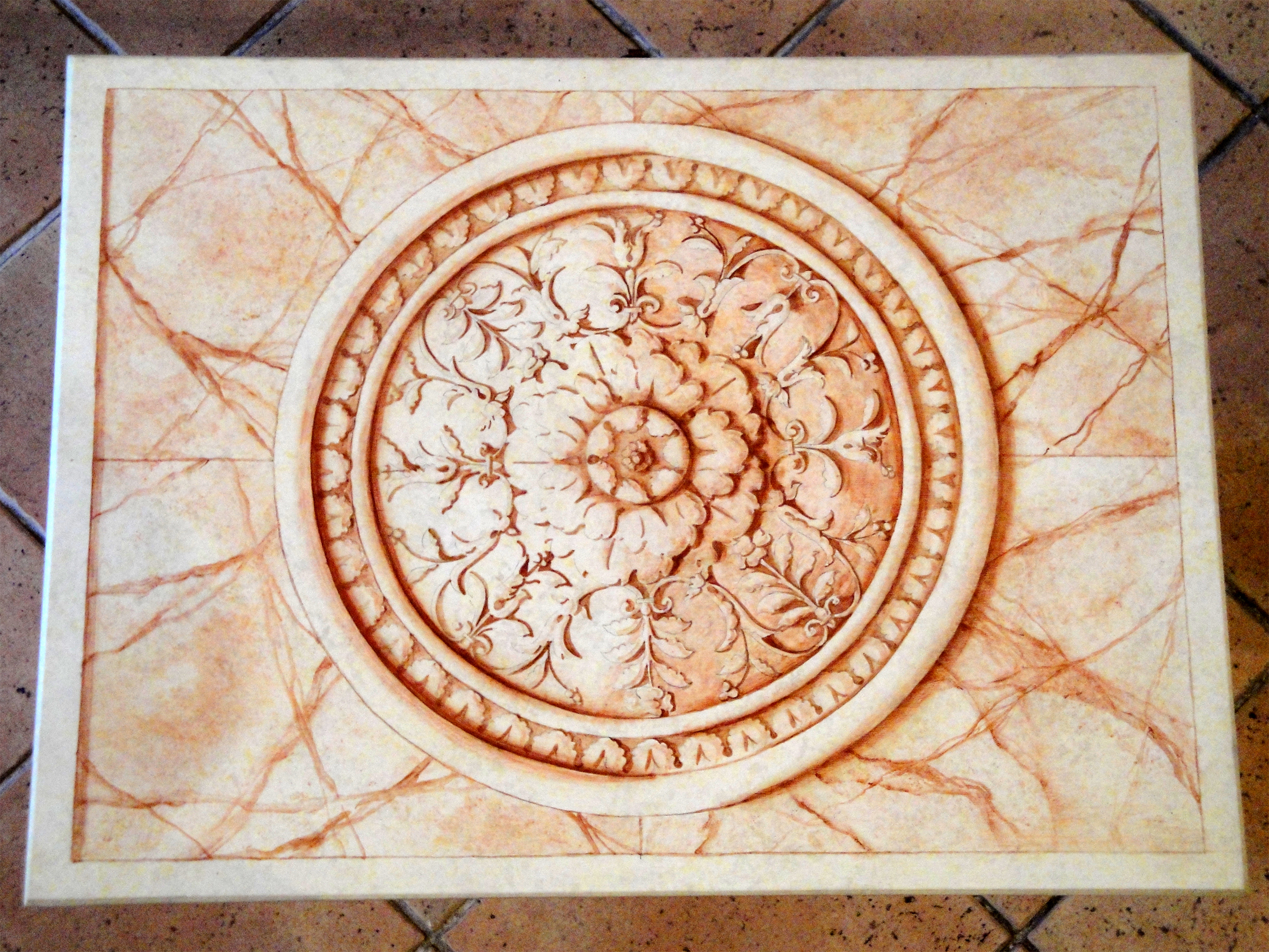 Pannello in legno in decorazione monocroma Pittura, Interni, Tecnica mista, 50x40cm Legno Tavola / Legno Tecnica mista con decorazione pannello monocroma Pannello in legno con decorazione monocroma, color sanguigna con rosone, a motivi floreali su base in finto marmo, eseguita con terre naturali e finitura lucida Inserita 13 anni fa 0 Mi piace Non piace più 0 Commenti 178 Visite Condividi Facebook Twitter Google + Non ci sono mi piace Commenti 0 Inserisci commento E' necessario effettuare il login o iscriversi per inserire il commento Login
