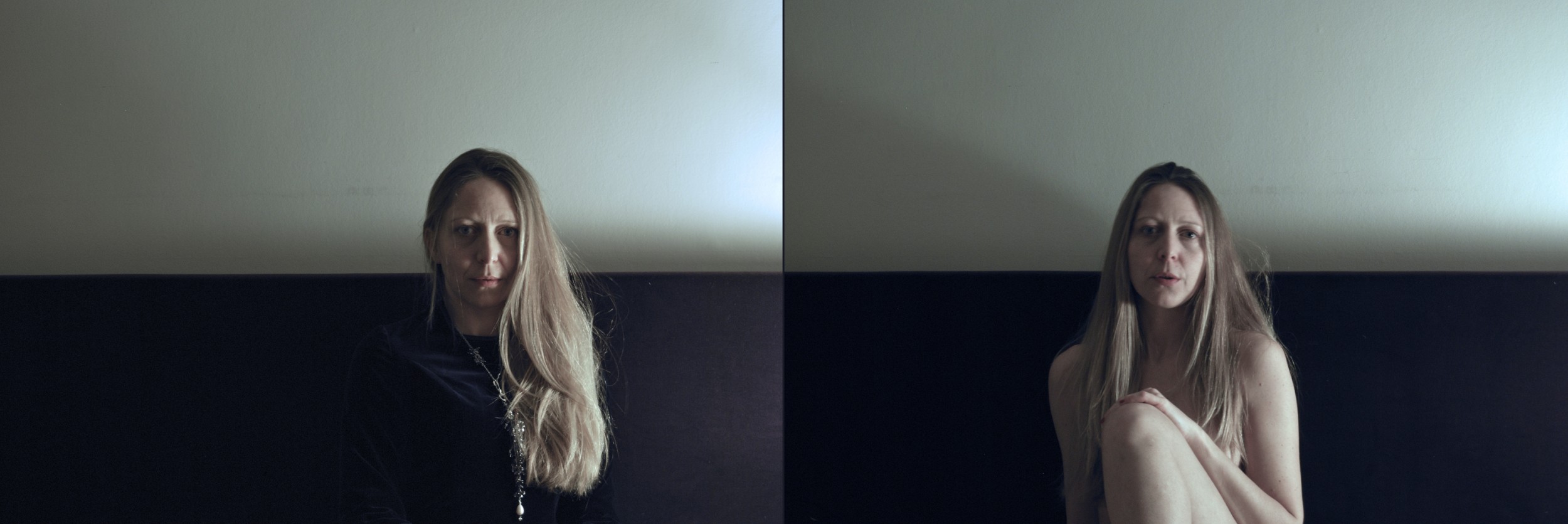 Queste coppie di autoritratti compongono una serie di riflessioni sull’essere. Mi chiedo cosa siamo realmente e come la nostra apparenza sia connessa al nostro intimo essere, quale rapporto interconnette il nostro Io-sociale che interagisce con il mondo esterno e il nostro Io-interiore profondo e meno, o mai, manifesto. Le coppie di ritratti rappresentano questo possibile incontro. Nella prima coppia la mia identità intima osserva la mia stessa intimità, sono entrambe nude, il contesto è quello dei meandri profondi dell’interiorità, sempre mutevoli, ma che soltanto noi stessi siamo in grado di cogliere in momenti di rara lucidità, quando l’intimità indaga se stessa; nella seconda la mia identità interiore è nuda e scruta la sua controparte sociale; nella terza coppia l’intimità e l’apparenza si offrono all’osservazione esterna. In quest’ultima composizione, l’osservatore incontra l’identità esteriore vestita e sente di coglierla e conoscerla nella sua completezza e definitezza; contemporaneamente entra in contatto con la mia identità interiore più intima di cui però ha una conoscenza fluida, sfuggente poiché la natura stessa del nostro Io-profondo è il continuo mutamento e per questo passibile di una conoscenza mai definitiva.