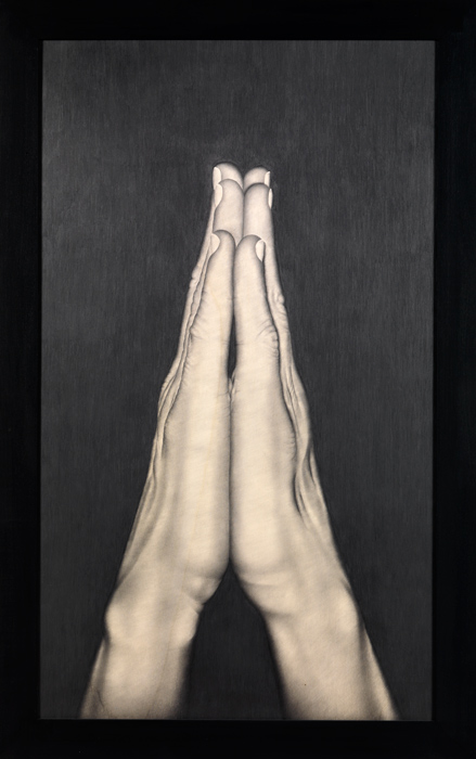Quest’immagine ha come titolo PENTIMENTO e sono queste mani giunte in un attimo di preghiera che può essere una preghiera cristiana ma anche una preghiera umana legata al proprio quotidiano e ai propri bisogni quotidiani di pace. Ma sono anche due mani che vogliono unirsi in un attimo di sensualità. Queste mani, giunte, in questa forma talmente tanto precisa e assoluta da essere già in per se sacre al di là del loro valore simbolico.