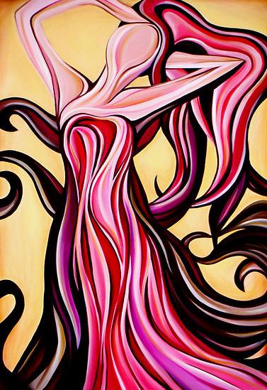 This piece tells the story of a lady. A lady who has embraced the essence of her soul, the essence of who she is. The yellow signifies her open mind, a connection to her intellect that gives her strength. With the brown tones she signifies a connection to the earth; she is self-assured but grounded. The pink and purple tones together with her pose show a readiness for independence, exploration of the senses, acceptance of passions, and a readiness of the heart for something new. This is the story of a lady who is ready to embrace life. - Leni Kae (dip Colour Therapy)