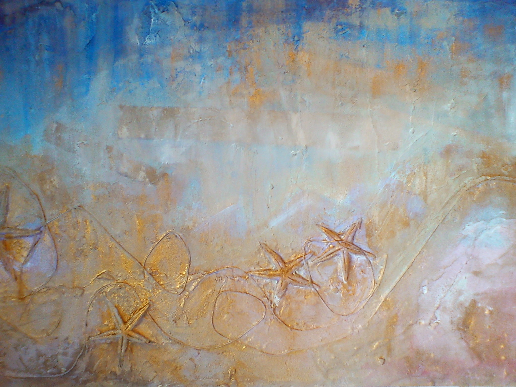 Opera realizzata con acrilico, stucchi, sabbia, stelle marine. Dedicata ai miei sogni da bambina.