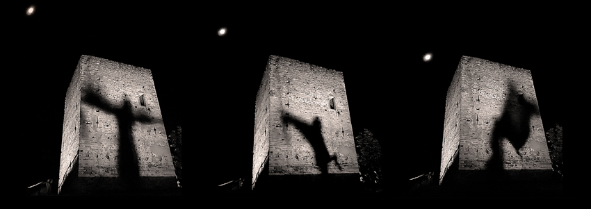Ombre notturne sulle mura di una torre medievale riaffiorano rivelando storie mai raccontate, segreti, memorie che si perdono nella notte dei tempi.
