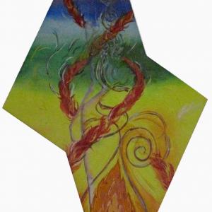 I colori, le immagini e le forme ci ricollegano con il mondo naturale: grazie ad esse le opere comunicano direttamente con l'anima dell'osservatore. La tela, i tessuti, la pelle e il metallo fanno parte di una ricerca rivolta al recycling e al recupero degli elementi naturali che ci permettono di connetterci con la materia.