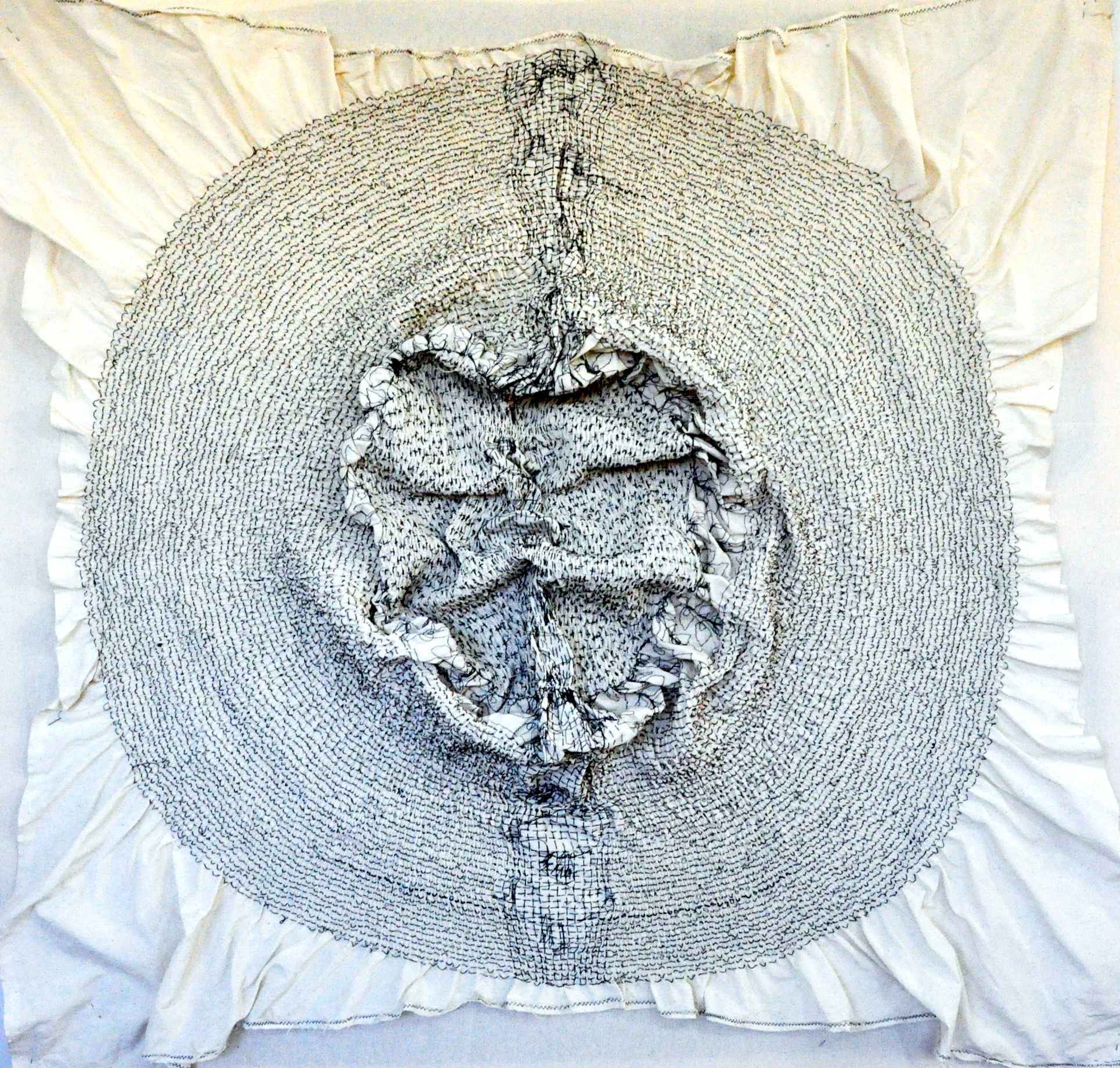 Here, this scene represents a glimpse into my birth place and the expanse of my thoughts and all that has drawn me to this path. Bareness of the visual kind and its brevity, are the reasons why I place these stitches on the expanse of the cloth. From this, emerges supple imagery.