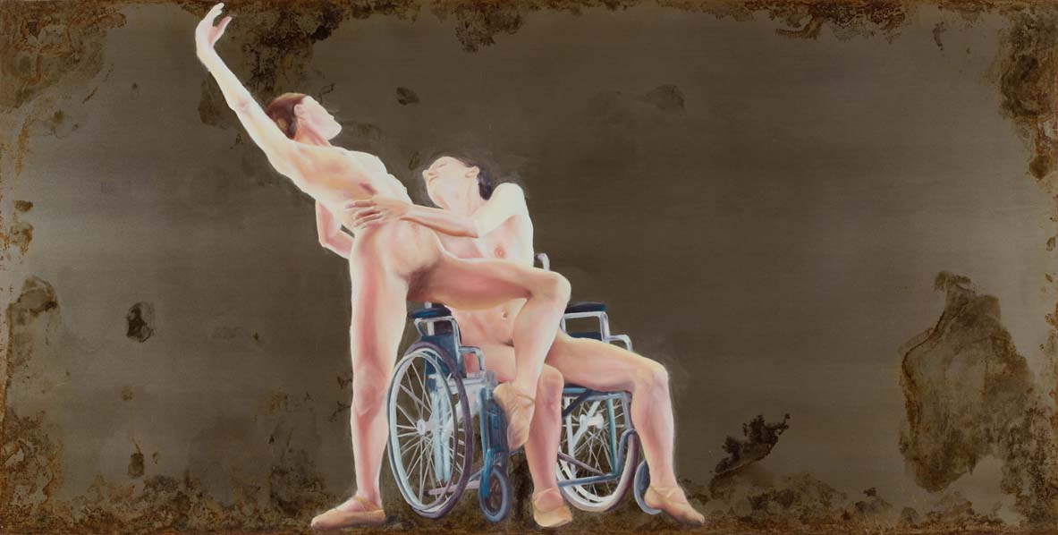 La serie “Il mare in Catene” si ispira all’omonima danza di Francesco Ventriglia, prodotta dall’Ass. Cult. Eliopoli per la Biennale di Venezia 2007. Il suo tema mi permette di ampliare la mia ricerca artistica che da tempo affronta la difficoltà di vivere esperienze che in qualche modo sfidano le regole sociali imposte. I danzatori rappresentati nei quadri sono Stefania Ballone, Lara Montanaro, Christian Fagetti, Francesco Ricci e Francesco Ventriglia.
