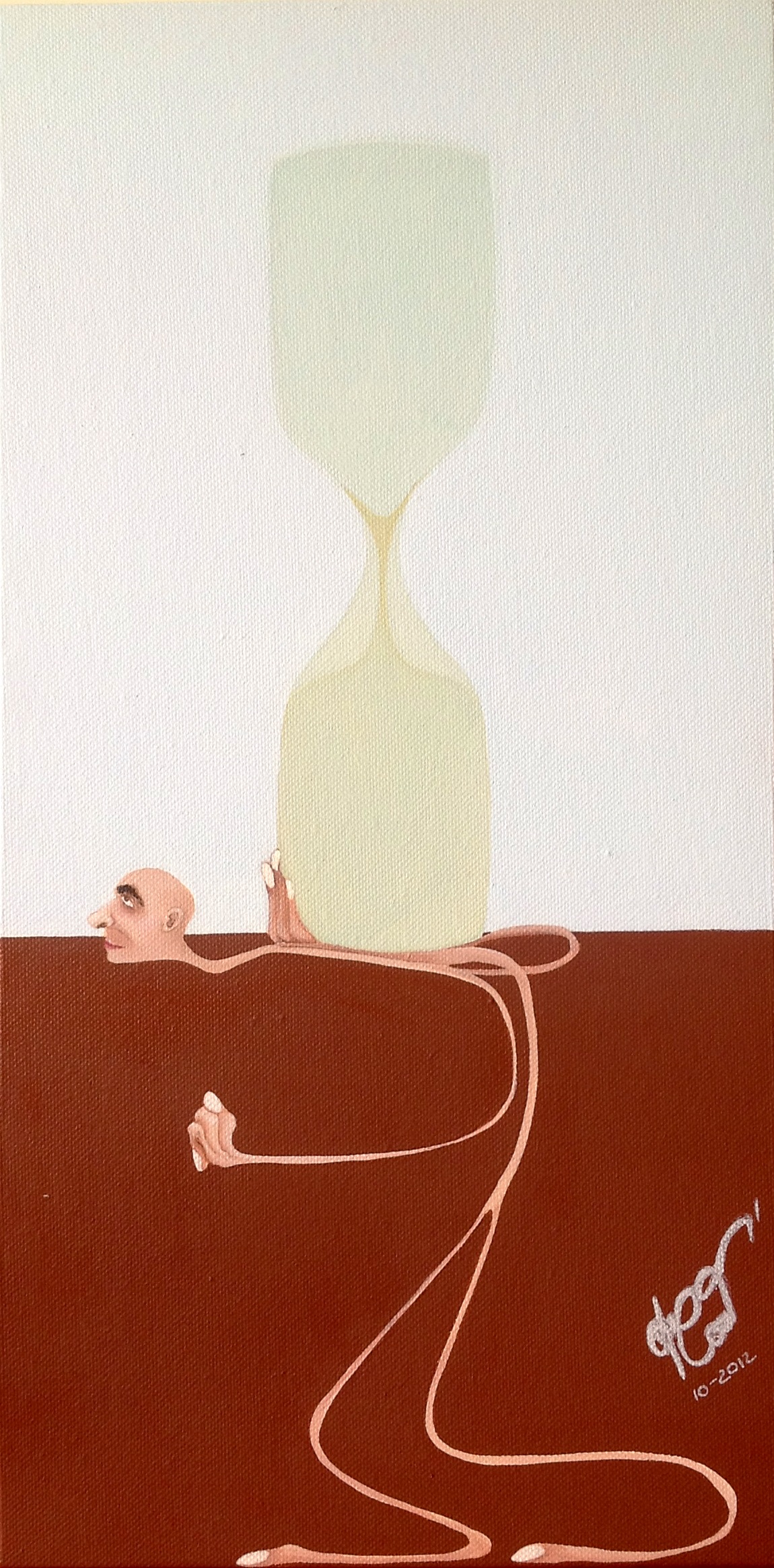 la vita scorre inesorabilmente , una surreale clessidra scandisce il ns tempo terreno segnando il corpo la mente lo spirito,trovo quest opera evocativa un viaggio pittorico,brava catia