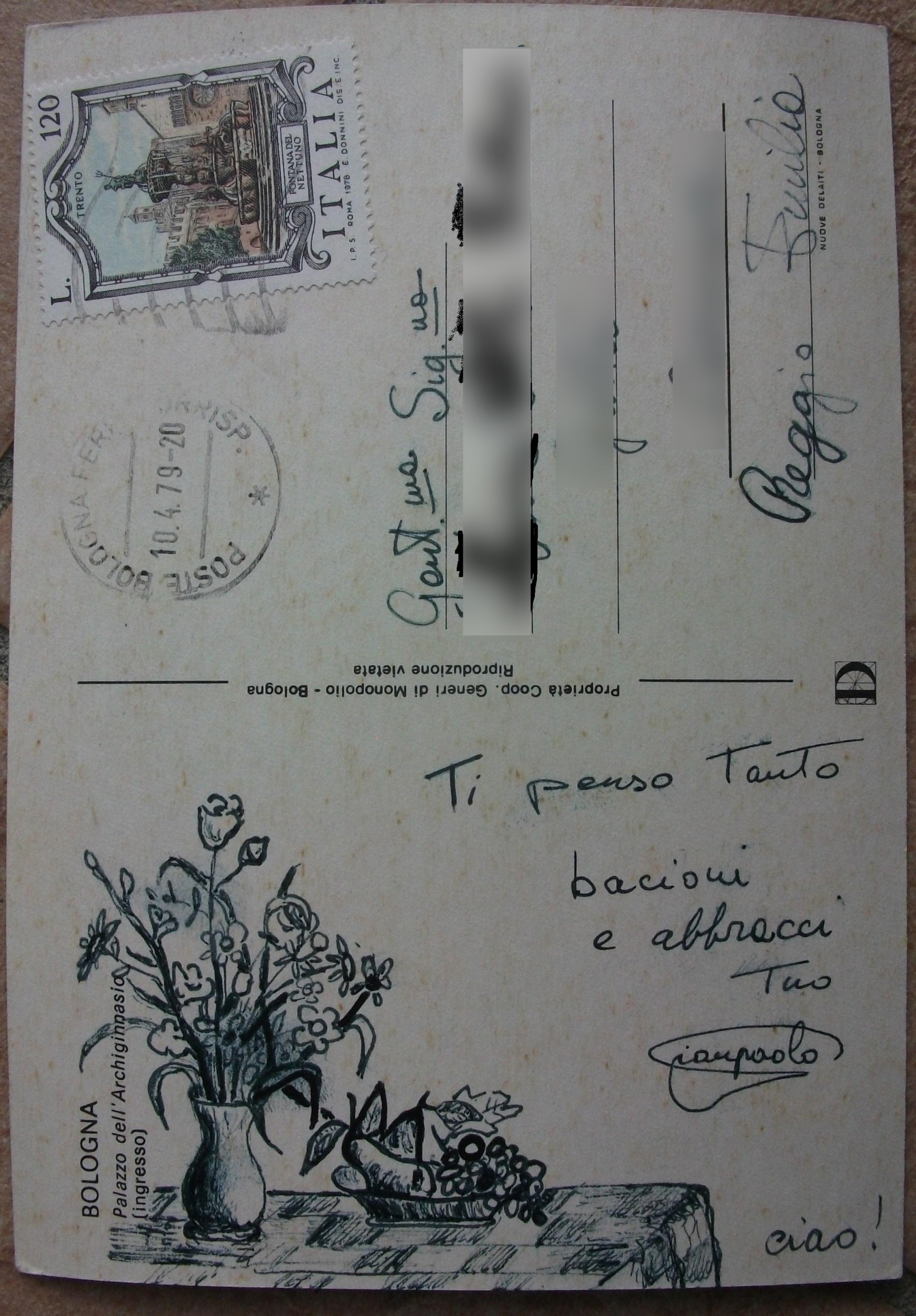 si tratta soprattutto di disegni a china della città di Bologna realizzati su cartoline e spedite alla mia fidanzata negli anni settanta (la mail-art, cioè arte per posta). Frequentavo allora la facoltà di ingegneria a Bologna e realizzavo queste immagini della città con messaggi romantici nascosti, per non renderli visibili al postino.