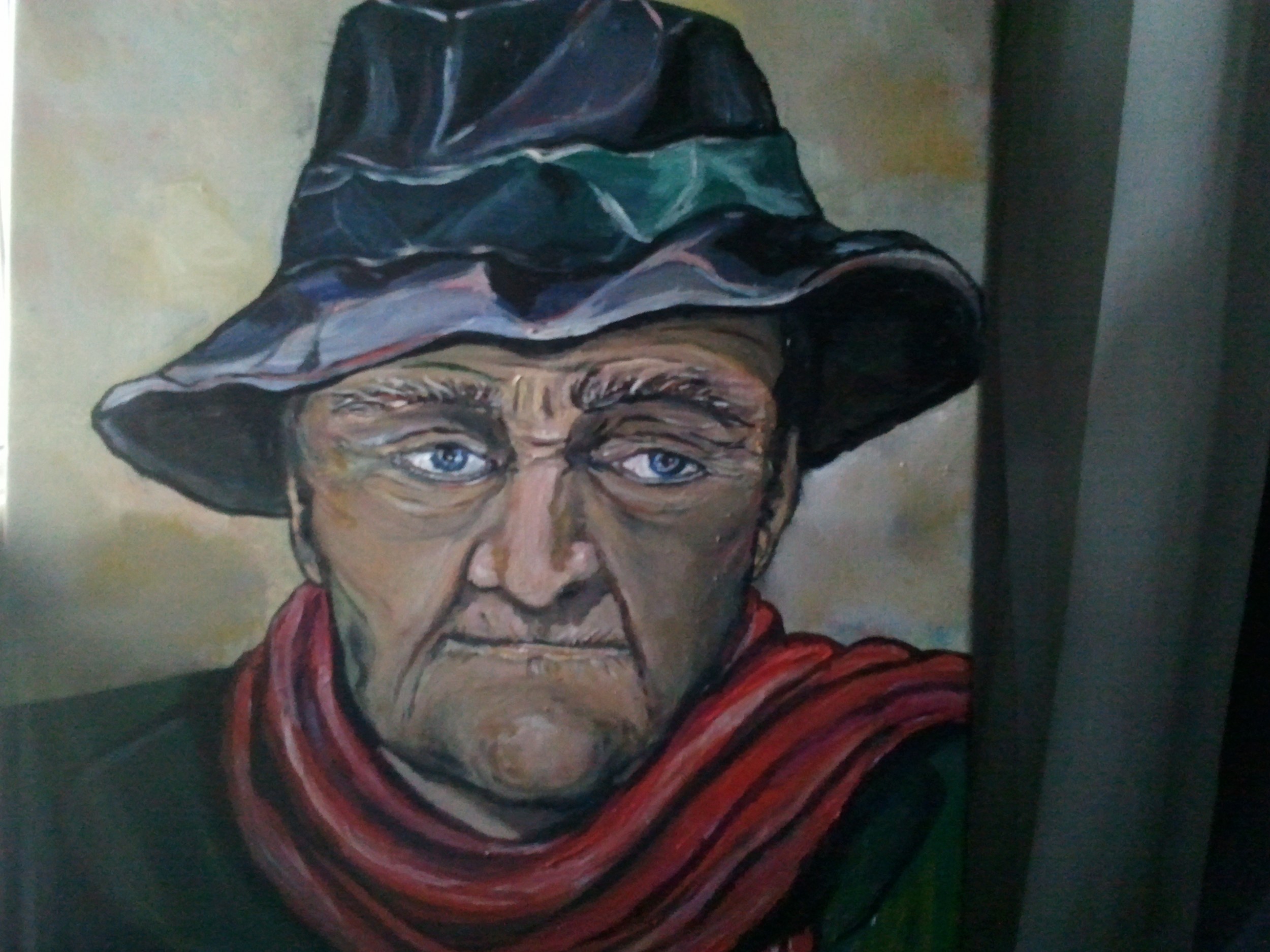 per questo lavoro Mi Sono ispirata ad una foto del 1944. IL PARTIGIANO di allora forte della sua dignità e della scelta di essere dalla parte giusta, ci guarda.. nei suoi occhi c'è un domanda rivolta a noi...dove ci ha portati il cammino, quante volte Sono stati dimenticati e traditi i valori e gli ideali per cui ha sofferto.e lottato.