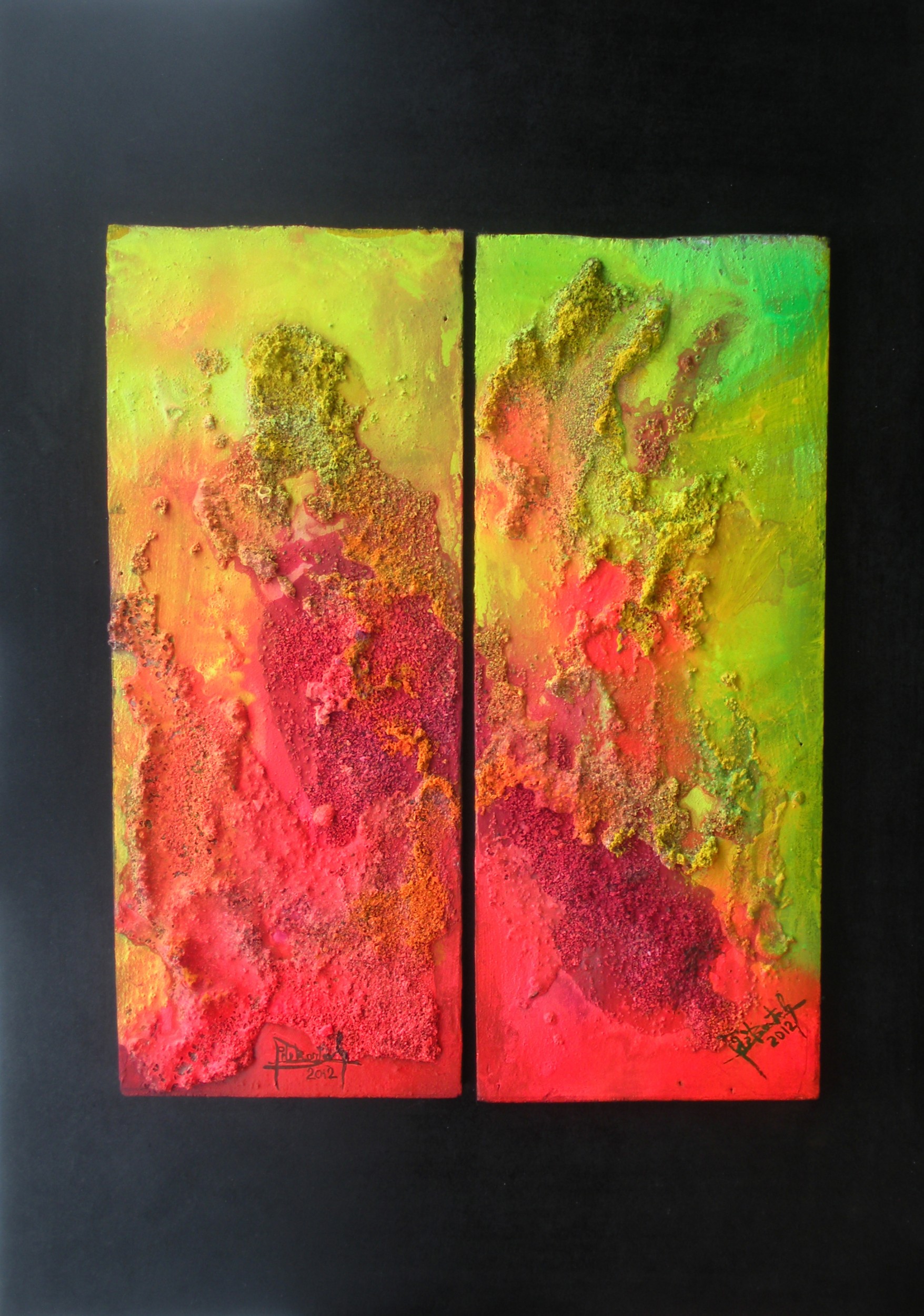 tecnica mista: acrilico fluò, tempera e sabbia corallina di Erice Mare (TP)