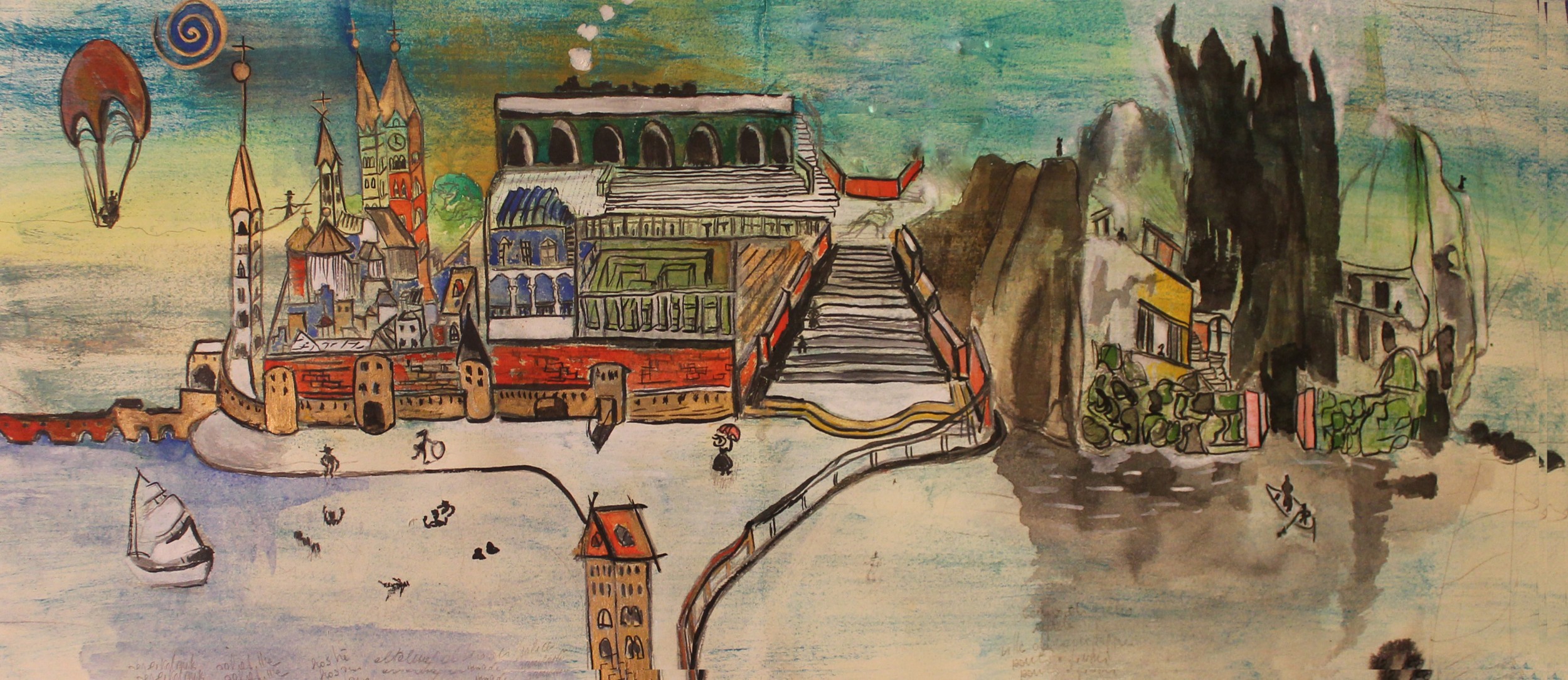 la città di altrove Pittura, Fantasia / Visionario, Paesaggio, Tecnica mista, 100x40cm Carta Tecnica mista mare barca castello Inserita 13 anni fa 4 Mi piace Non piace più 4 Commenti 245 Visite Condividi Facebook Twitter Google + Piace a 4 raimondo izzo Artista - Arezzo B. R. (Interforma) Live Media artist, Organizzatore - Litzmannstadt, Poland Antonio Esposito Artista - Roma Viváine Rebouças Artista - Belo Horizonte, Brasile Commenti 4 12 anni fa raimondo izzo Artista Talvolta la pittura è la scrittura di un sogno non raccontato, talvolta il sogno raccontato in pittura ci fa volare leggeri in mondi insperati. 13 anni fa Barbara Ghisi Premium Artista ciao questo disegno con la sua composizione è bellissimo e geniale. Dipinto in modo leggero, corretto e molto personale. Brava tendi all'illustrazione! complimenti 13 anni fa maria grazia cimatti Artista grazie,ci sono vari riferimenti iconografici e simbolici. 13 anni fa Maristella Angeli Artista, Pittore Molto interessante! Inserisci commento E' necessario effettuare il login o iscriversi per inserire il commento Login