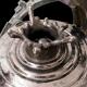 Rappresentazione della mela del peccato originale. Iteramente in terracotta, la mela è smaltata in platino a terzo fuoco
