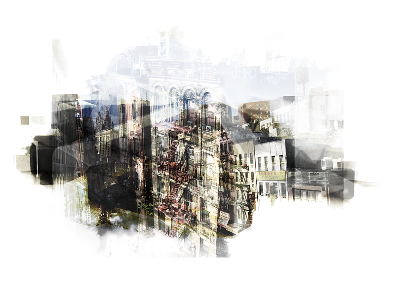 Crossing the Manhattan Bridge, you look West to see East Broadway and Chinatown, where the Far East adapted to the Western world in order to provide the West with goods from the Far East.