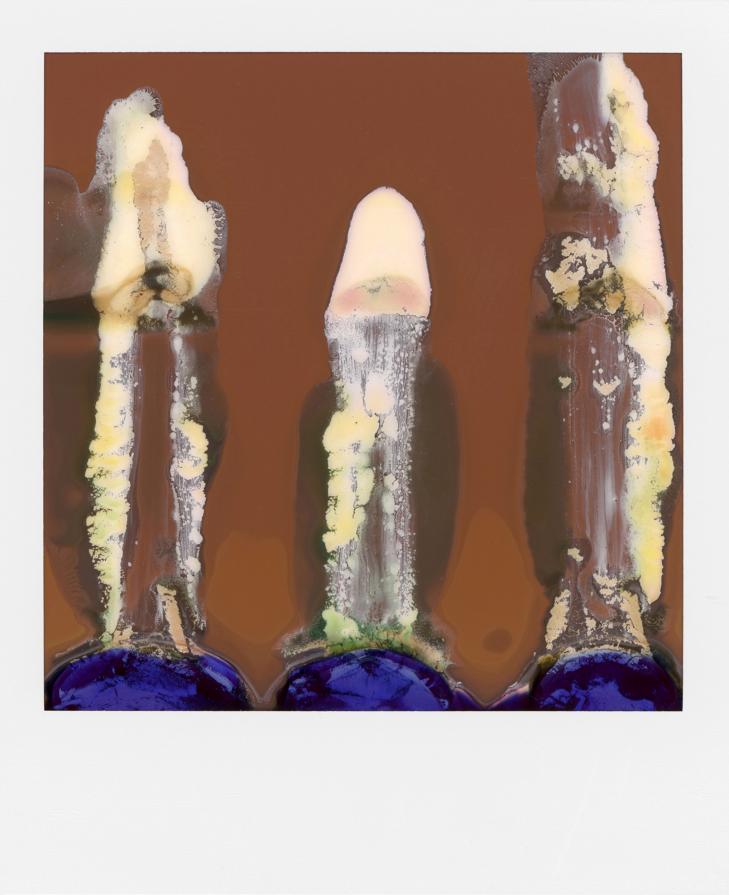 With its first use I realized the camera wasn’t functioning properly. It sometimes spills out 2 pictures at a time and the film often gets stuck in the gears, exposing and mangling them in unpredictable ways. I've figured out how to control and accentuate aspects of the camera's flaws but the images themselves are always a surprise. Each one is determined by the idiosyncrasies of the film and the camera.