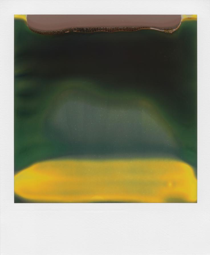 I am impressed with the old technology’s resilience. This Polaroid camera is broken, by chance, in a way that is productive but the flaw that has given it that extra dimension has also robbed it of its initial purpose. When the narrative and depictive elements are nearly removed from the photographs one can concentrate on the details of its abstraction. Any representational remnants of the original image as well as any hint of the will of the photographer become recontextualized inside this new dynamic.