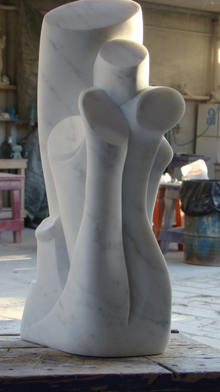 Scultura in marmo bianco Carrara, dove l'energia del marmo porta una armonia nelle forme e estilo, anche se è una forma astrata.