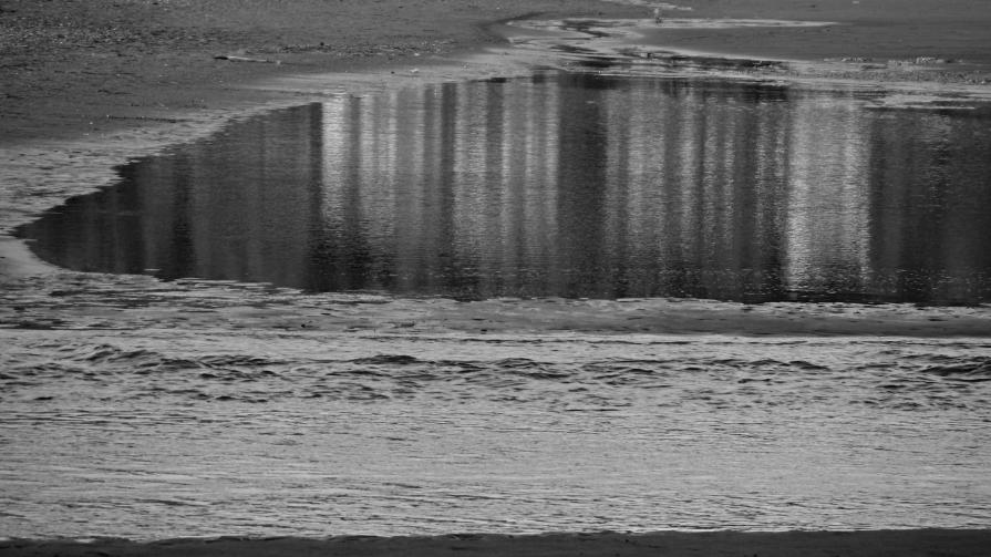 In one of the ephemeral pools are seen reflections of the buildings of the village. The distorted picture by the undulations and sunset light reminds me of a forest shown out of focus. I think of those days where you're out walking for nature photography but you're not inspired and make mistakes themselves beginner ... unfocused trees ... like a distant and mysterious rainforest.