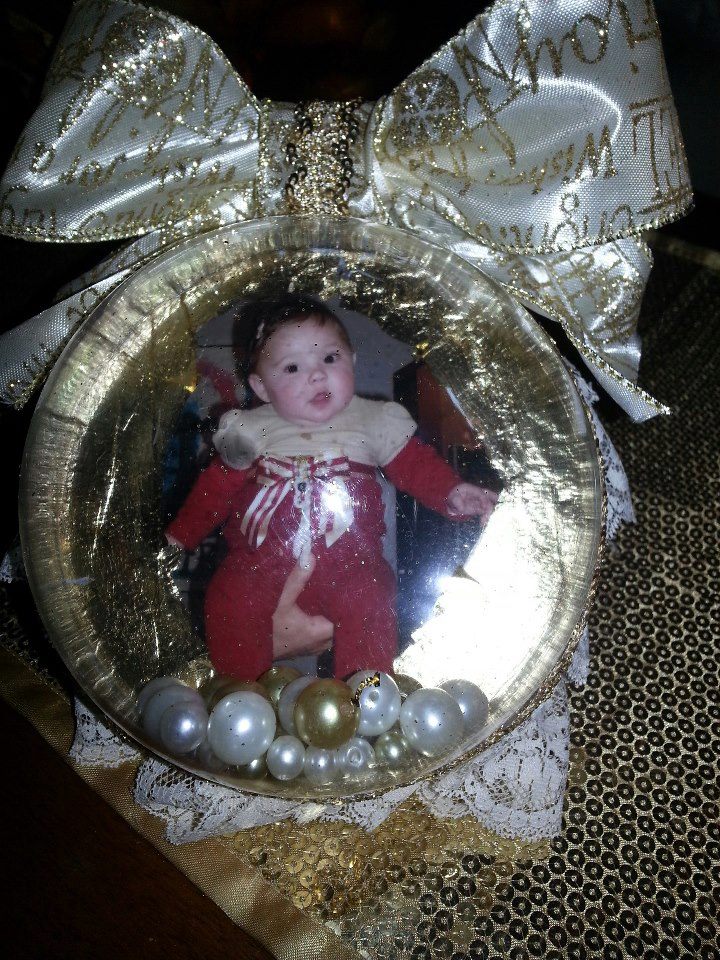 PALLA DI NATALE PERSONALIZZATA CON FOTO E FOGLIA ORO INTORNO, IL DIENTRO E' RIVESTITO CON BALZE DI PIZZO E ALL'INTERNO DELLA SFERA E' ABBELLITO CON PERLE, IL TUTTO CONTORNATO CON PASSAMANERIA ORO E FIOCCO . IL TUTTO PERSONALIZZABILE