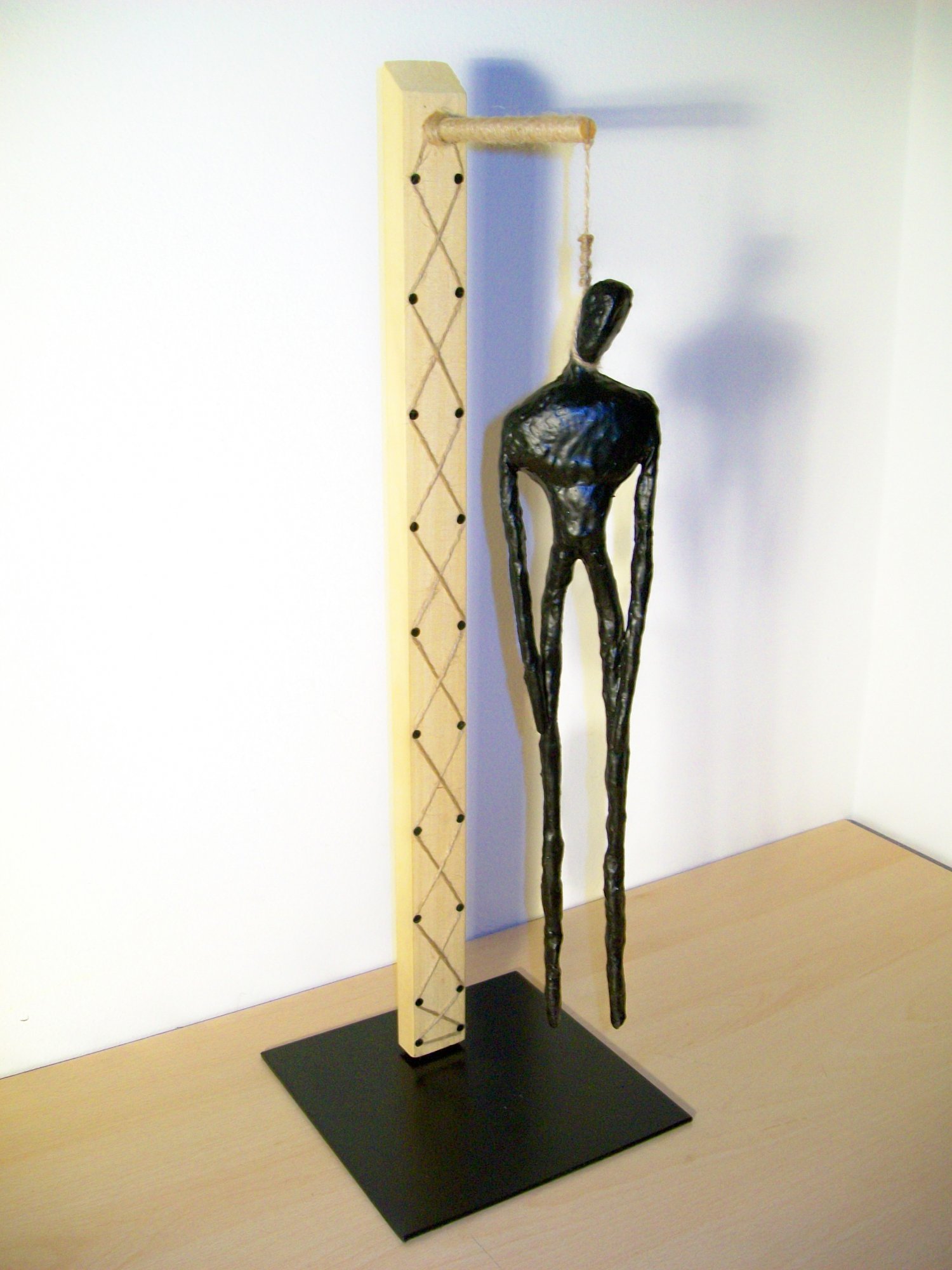 Il nichilismo, la negazione di ogni valore per Nietzsche l'ospite inquietante pervade ogni essere,un contributo alla fine di questa psicosi deve darlo l'arte,la cultura, un patibolo dove far morire questo stato d'animo,il nichilismo appeso ad un cappio,sorretto da una colonna senza fine brancusiana.