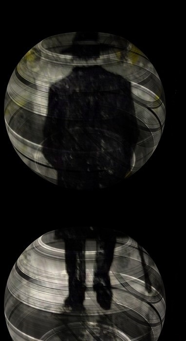 omaggio a federico fellini,tempo fa ho visitato una mostra di andrè khon,tra i suoi bellissimi dipinti c era quest uomo in nero,mi è rimasto nella mente e quando decisi di fare un omaggio a fellini la prima immagine che mi è tornata era appunto quel quadro di khon,l ho realizzato in vari modi ,questa rappresentazione è a olio,fotografato in digitale, ritoccata con net art, ristampata su tela.THE DARK MAN