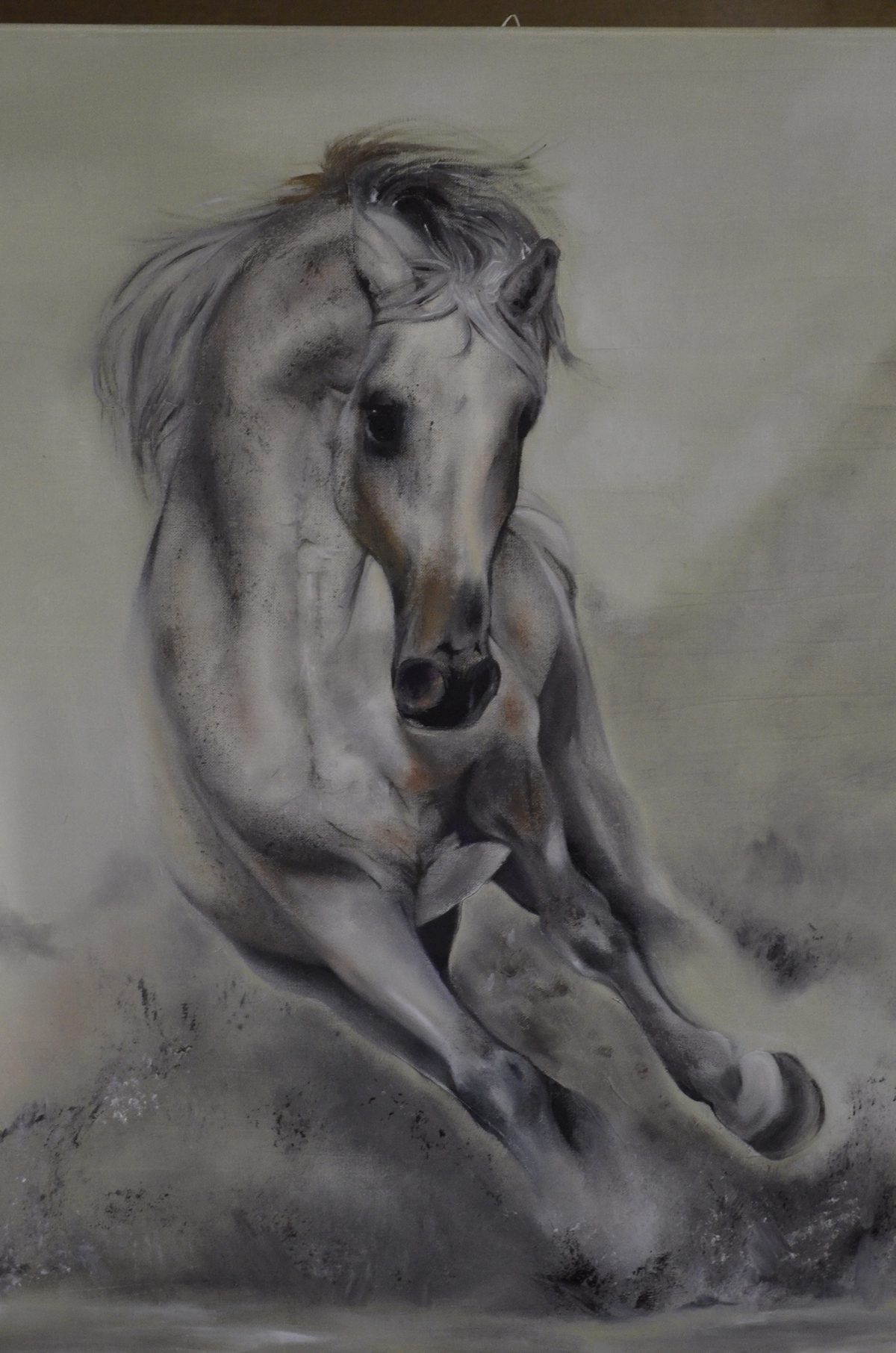 cento sfumature di grigio che generano la visione,il galoppo si fa tuttuno con il terreno,il cavallo sente i suoi zoccoli a contatto telepatico con il suolo,e tutto diventa di un colore,fre elementi,velocità,aria e terra tra di loro si fondono,e le cento,mille sfumature si avolgono in una corsa di libertà.Bellissima,si fa bene a rivedere ogni tanto i lavori degli altri sono di insegnamento