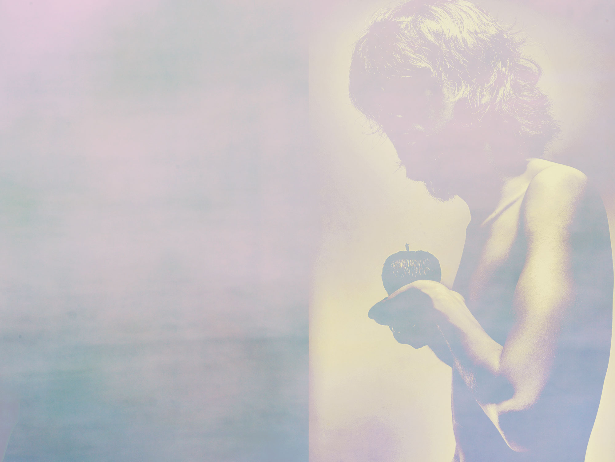 this image are interpretation about the virgin and apple, it's not just about human being but also talk about connection in daily life. Mind interaction with body and environment described to peace, calm and pure love from the heart.