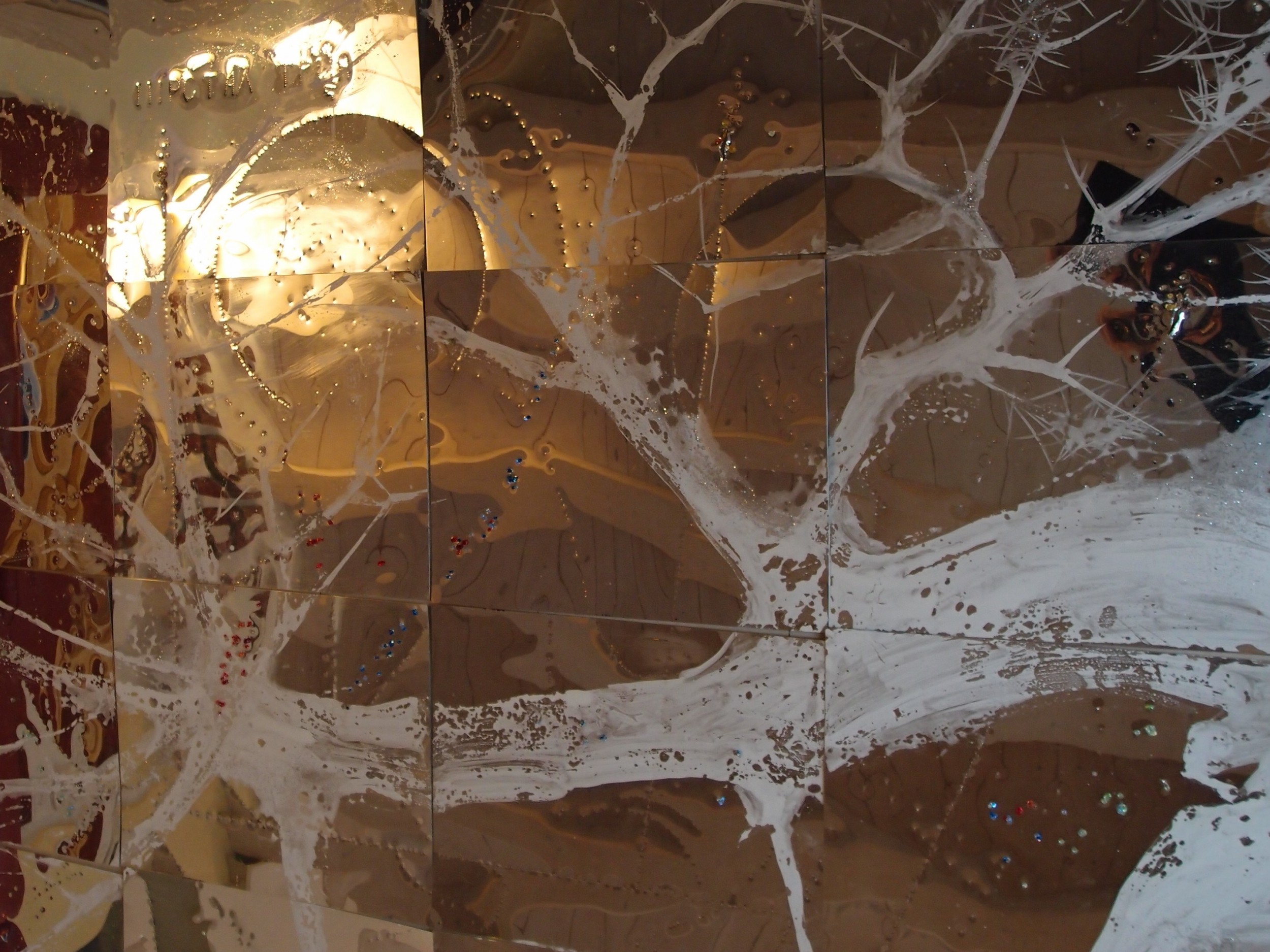 L'opera è realizzata su lastra specchiante quindi cambia la sua immagine in relazione all'ambiente ed ai punti di luce